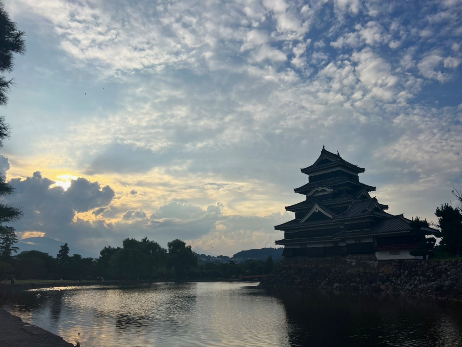 18日も30度を超える暑い1日でした。夕涼みするには、まだ昼間の火照りが取れていませんが、人も少なく気持ちのいい松本城公園