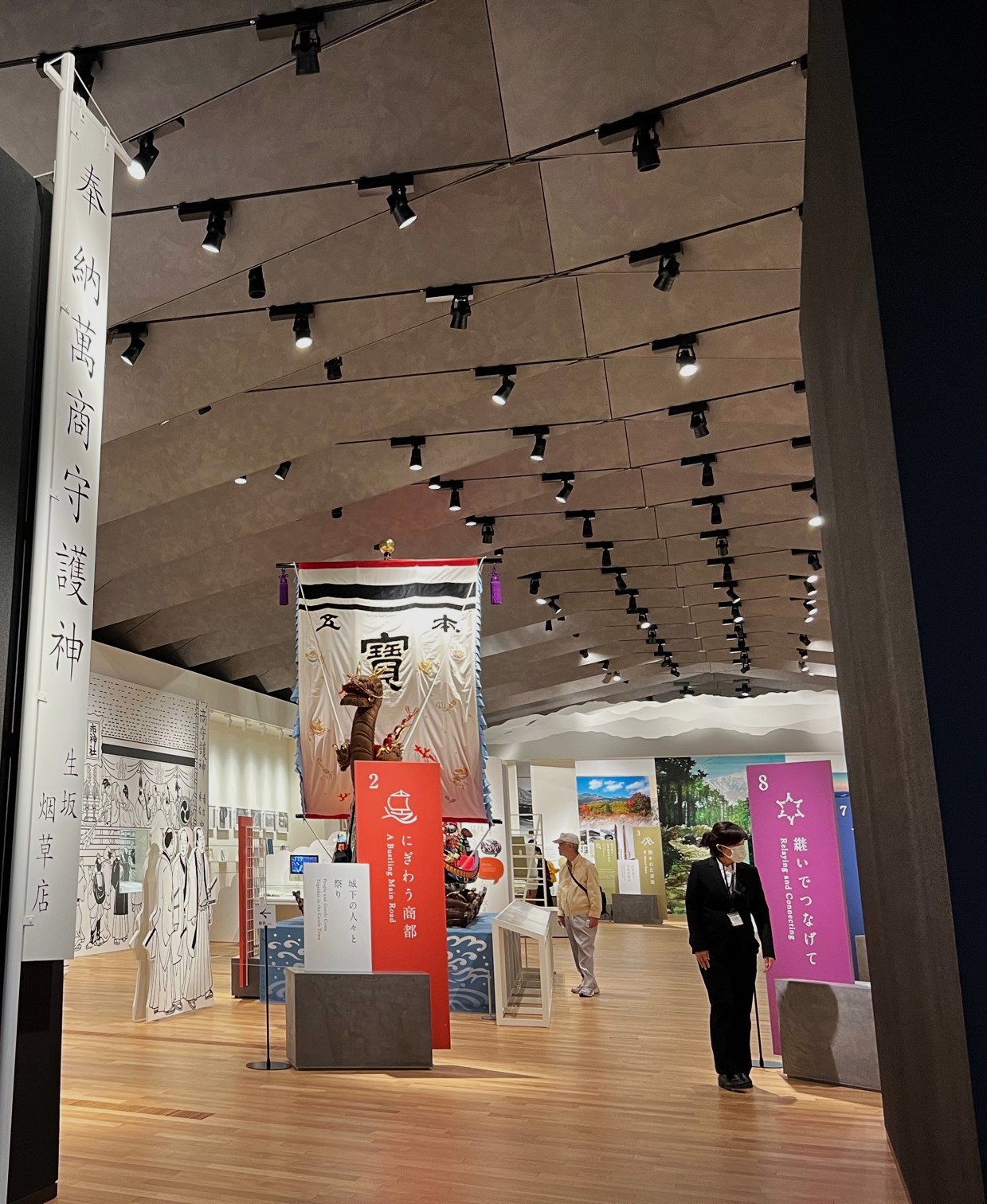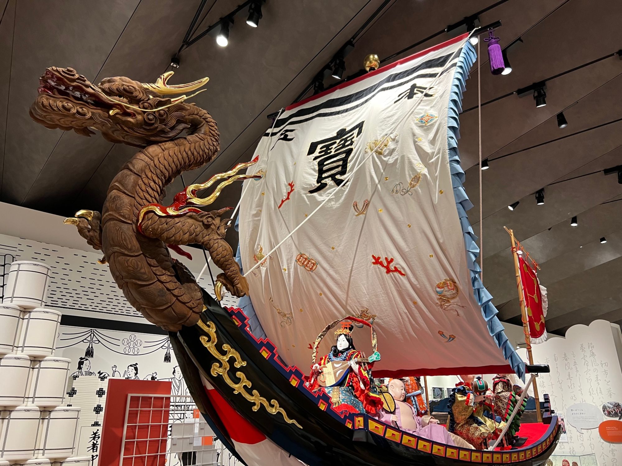 にぎわう商都では、城下町ジオラマに並ぶ目玉の展示「宝船」があります。