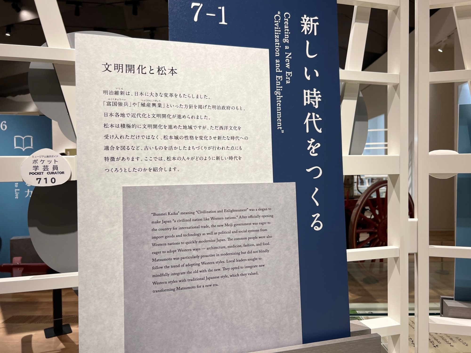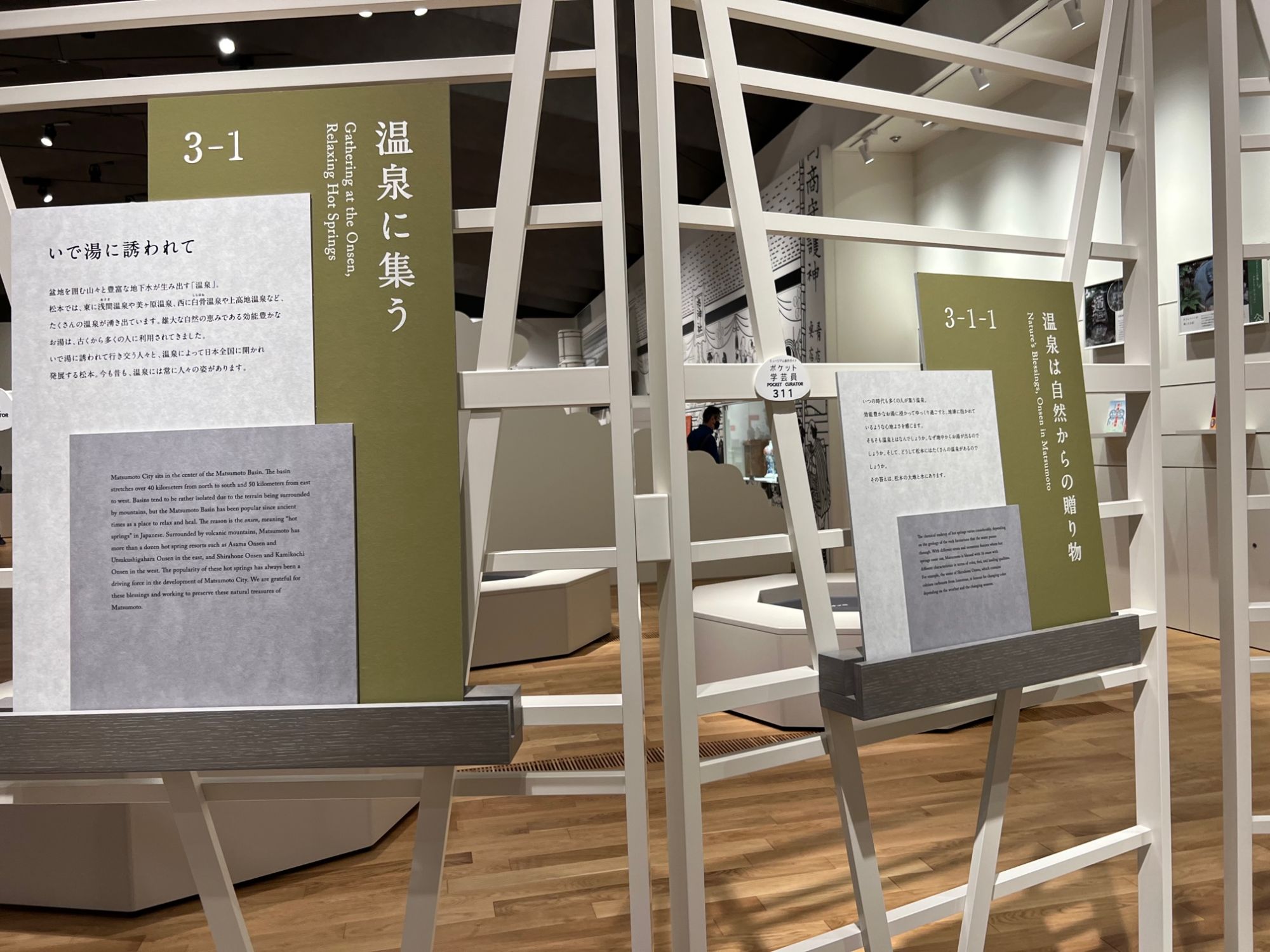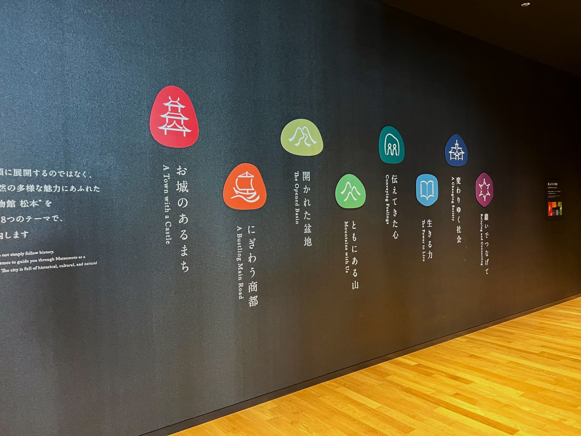 常設展示は、多様な魅力にあふれた「松本まるごと博物館」の目次であり、また、現地へ誘うガイダンスセンターとしての役割を有しています。常設展示室の出口は、そこから始まる「松本を知る旅」のスタート地点です。展示で興味を持った文化財や場所があれば、現地で本物を見てください。また、市内各地の博物館分館でより専門的な展示を見るのもいいかもしれません。展示観覧のあとは、まちに出かけてみましょう。(公式サイトより)