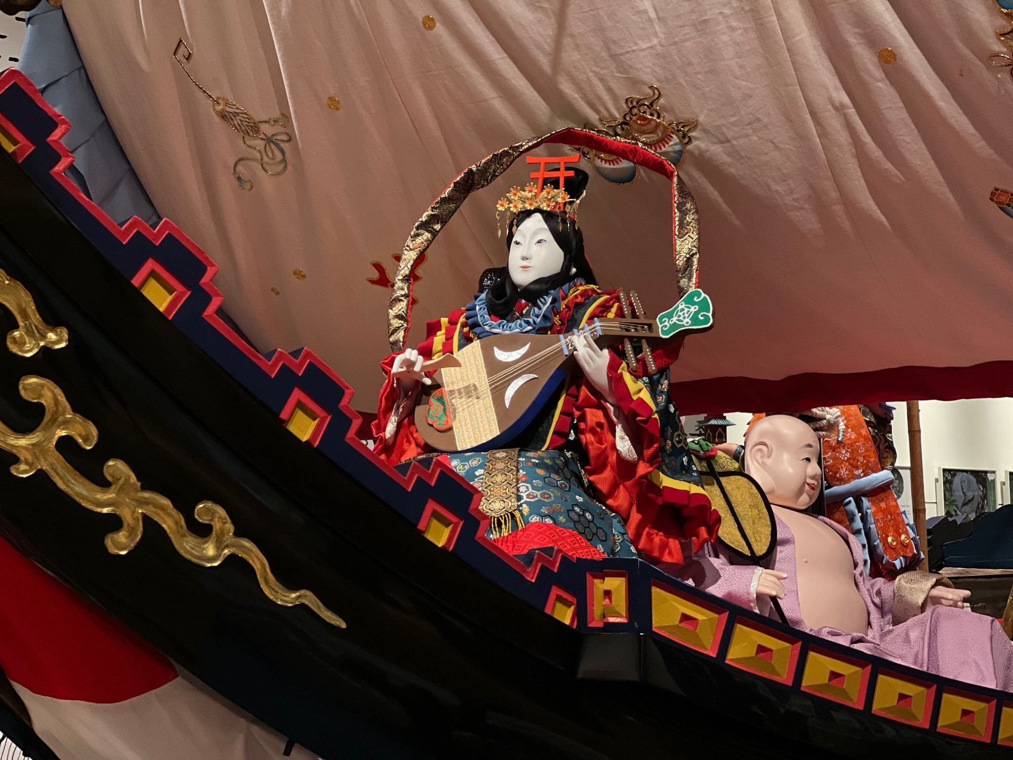 旧博物館にあった宝船をあらたに漆を塗り直し、人形も作り変え迫力ある宝船になりました。