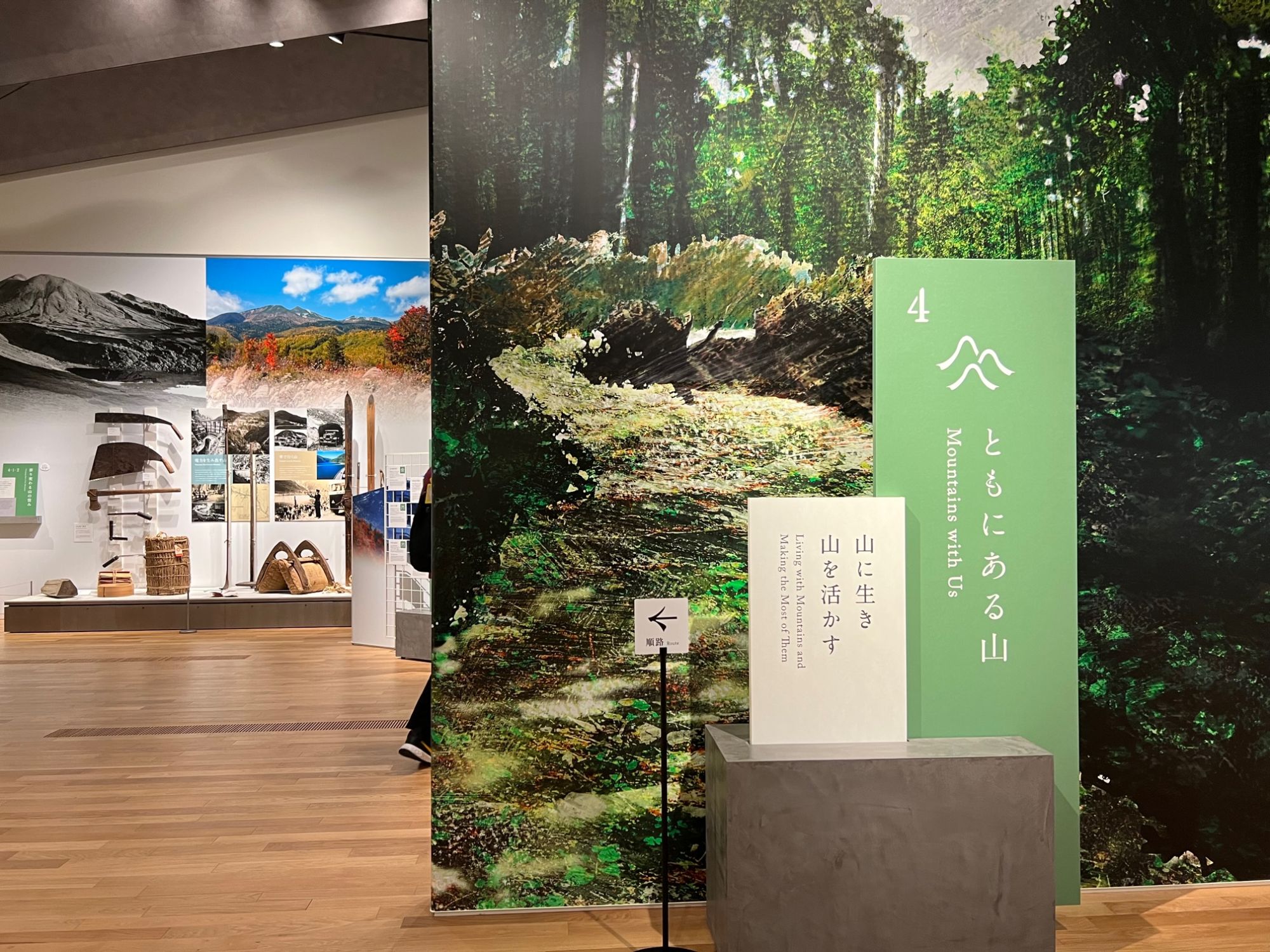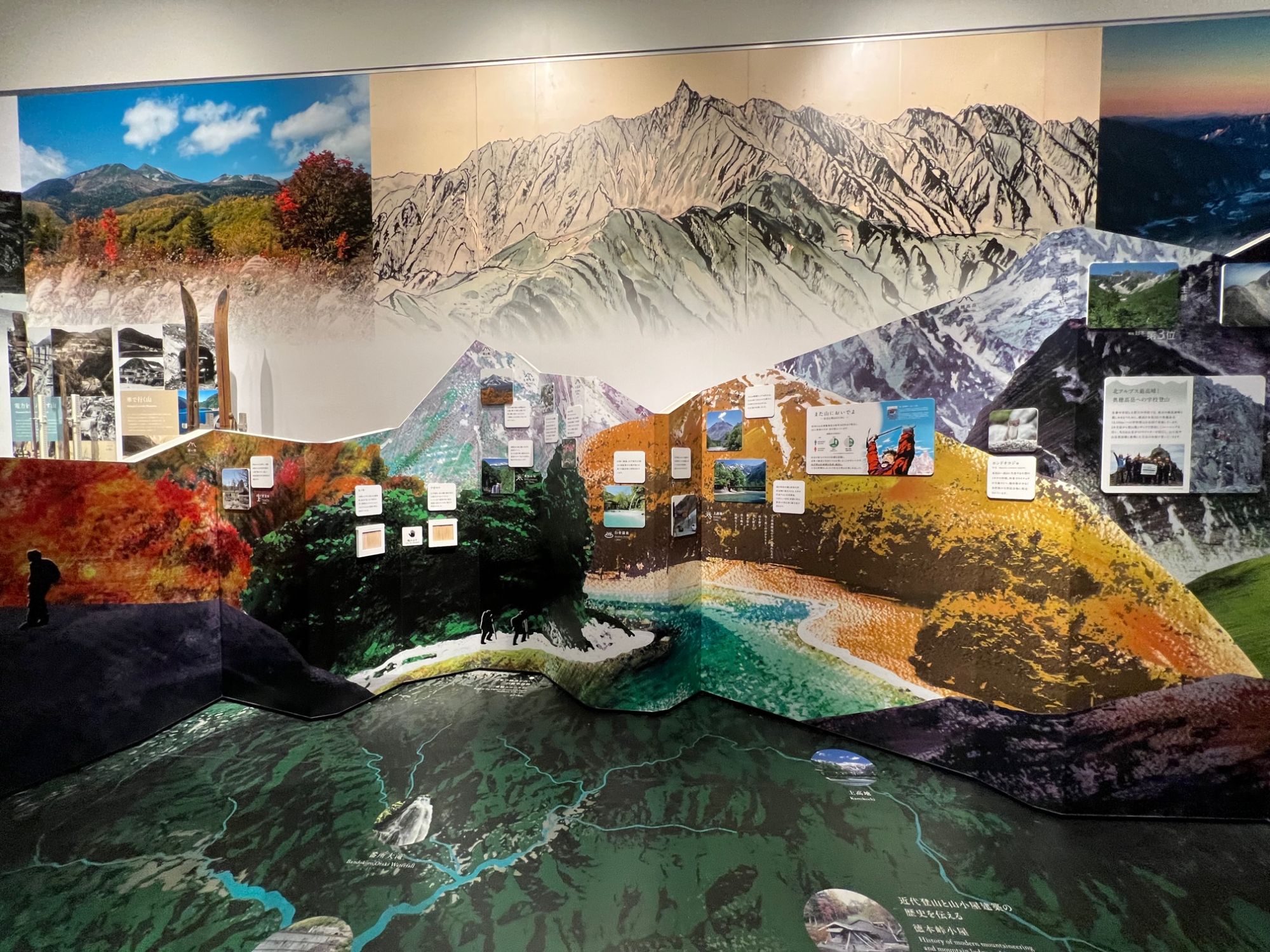 迫力ある北アルプスの写真 反対側には、東山の展示もあります。