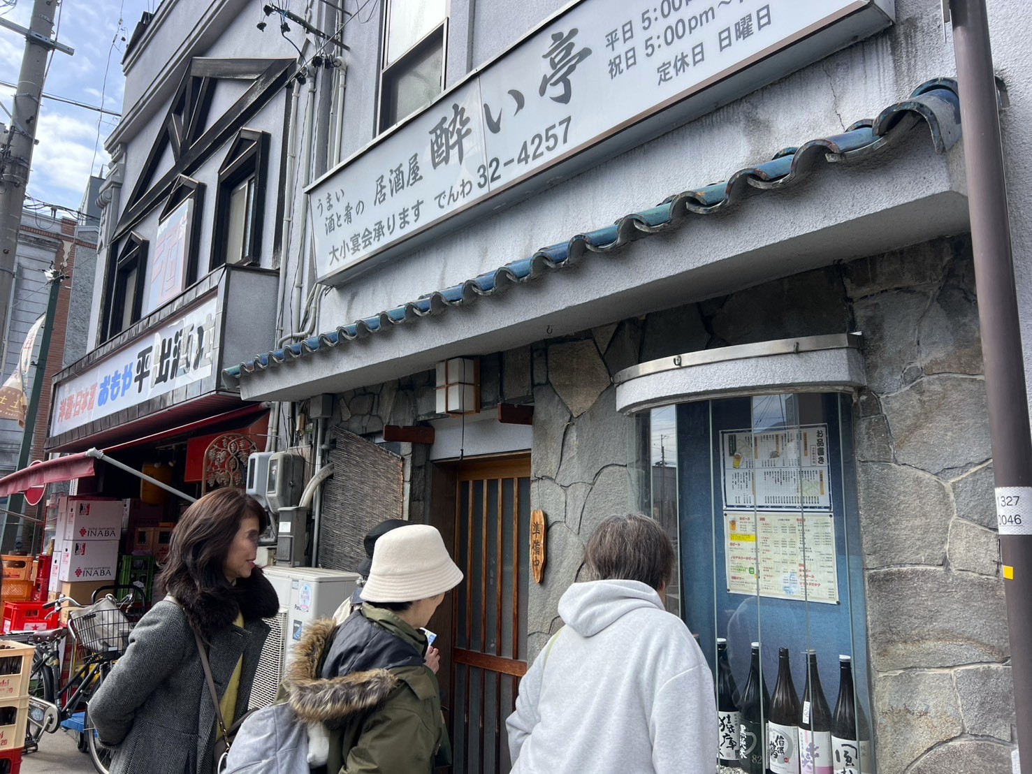 上土通りに出ました。酔い亭さんのメニューに皆さん興味深々