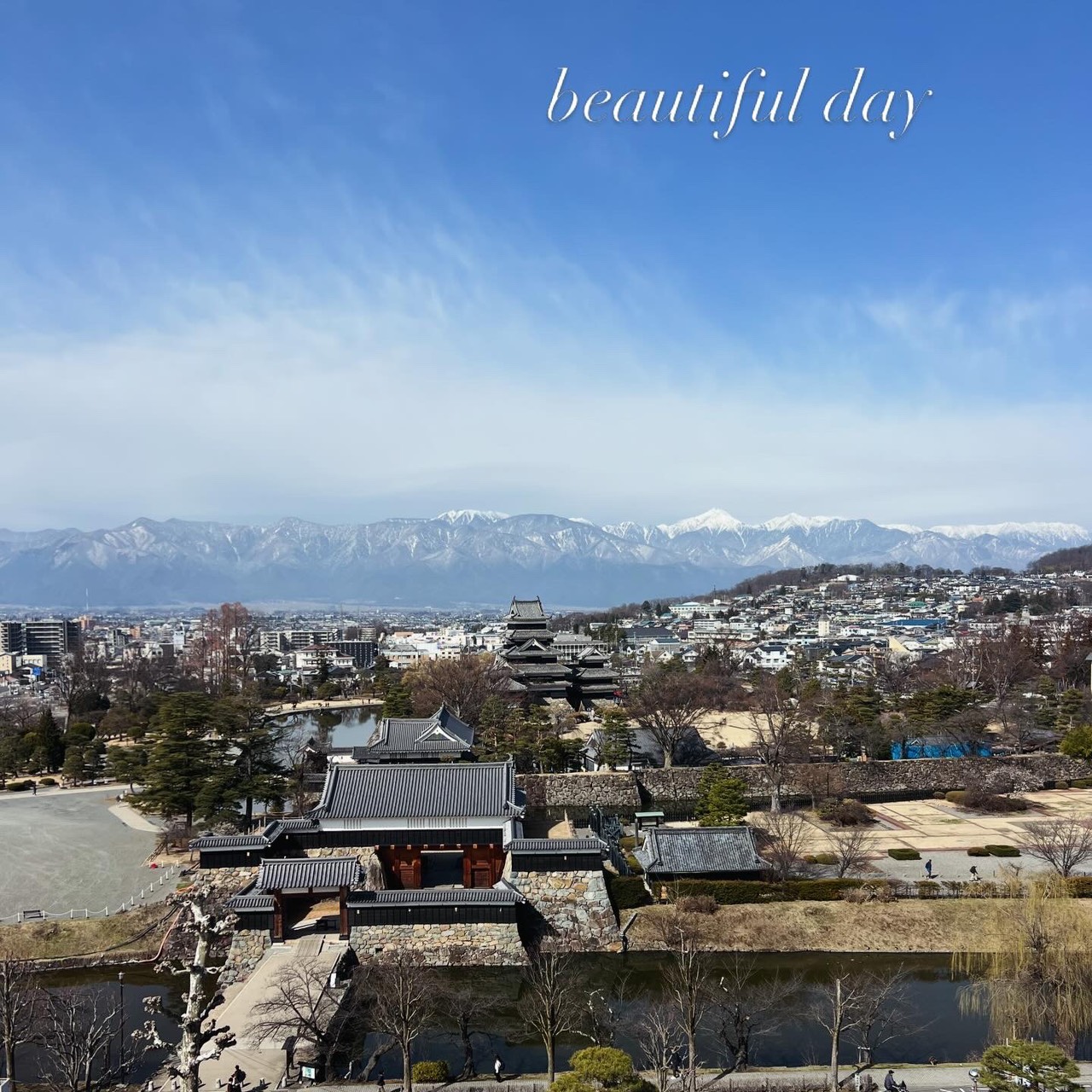 松本城総掘りの梅が満開でした。