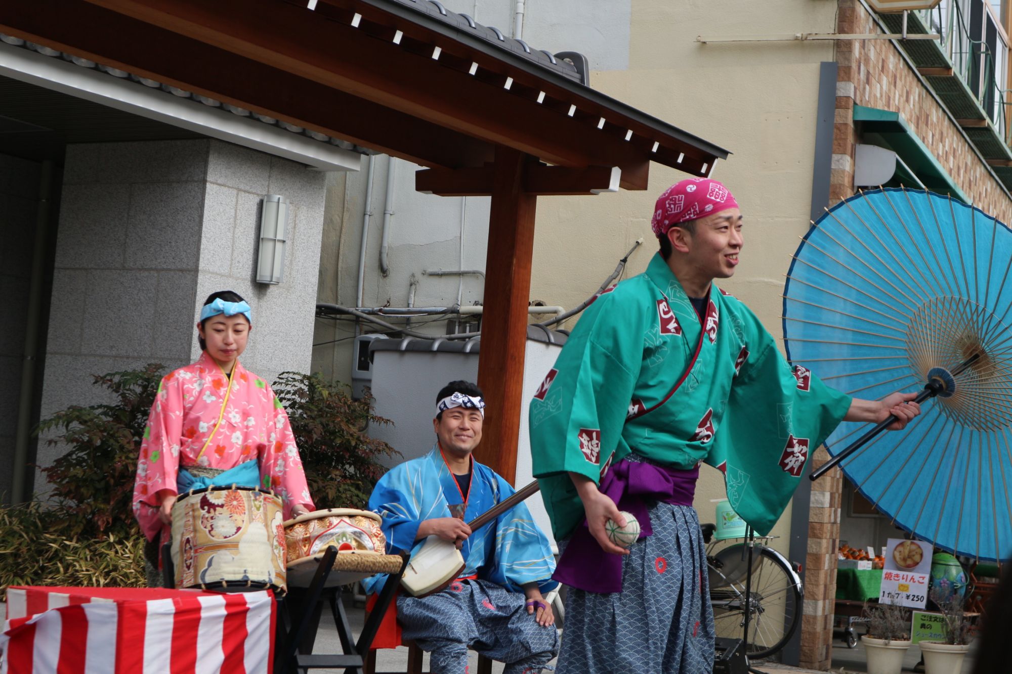 春よ来い来い「春告げ祭」ナワテ通り イベントレポート 2019.2.12 ♥71 商店街の花屋の軒先に春待ち「ネコヤナギ」 2月11日(祝)ナワテ通りでは毎年恒例の「春告げ祭」が開催されていました。 浅間温泉「火焔太鼓」の皆さんの元気な太鼓の音に大勢ギャラリーが聞き入っていました♪ 太鼓の演奏が終わり、ちんどん屋さんに連れられて神社前から東へぞろぞろと 田楽座獅子舞 前田斜めの浪曲 けん玉GLOKEN お汁粉振る舞いなどもありました。 風が冷たくてとても体感温度が寒い日でした。 しかし夜駅の温度計は 5℃随分暖かくなりましたが、まだまだ寒いです。 Tweet