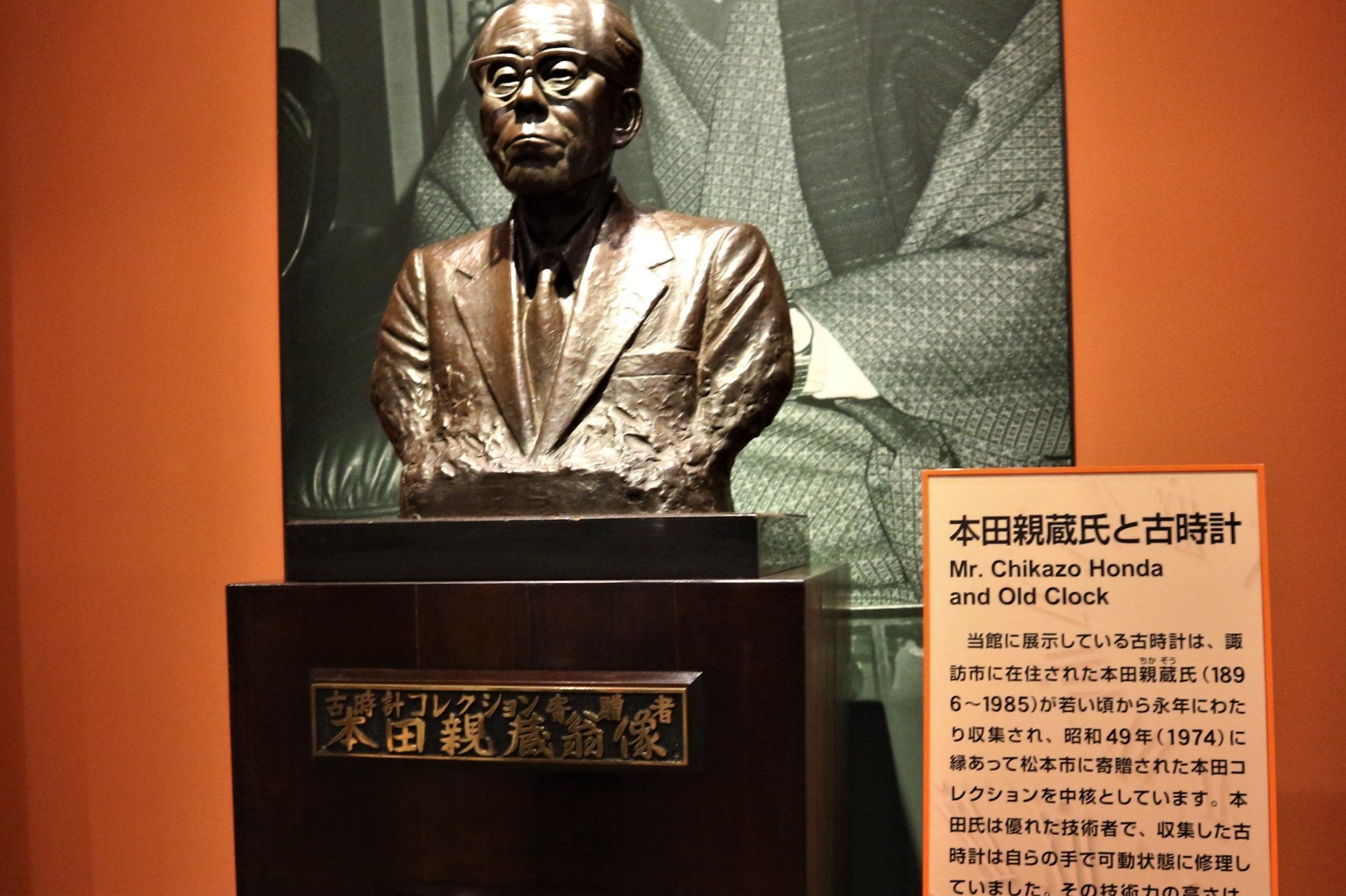 本田親蔵(ちかぞう)氏(1896~1985)は、生涯をかけて収集した貴重な和洋の古時計コレクションを、人々に永く親しんでいただきたいと願い、松本市に寄贈されました。当時は、松本市立博物館に置かれていましたが、平成14年、松本市時計博物館が開館しました。