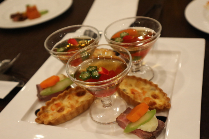 素材を活かした前菜 オクラの苦みと和風だしのゼリー寄せが熱い日にピッタリです。