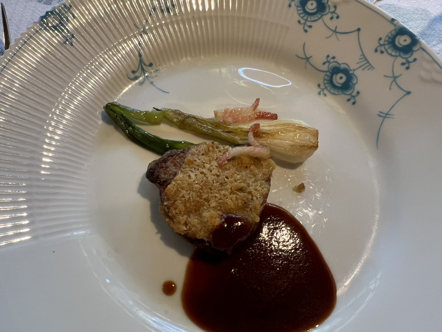 新玉ねぎロースト乗せ仔牛とネギのソテー