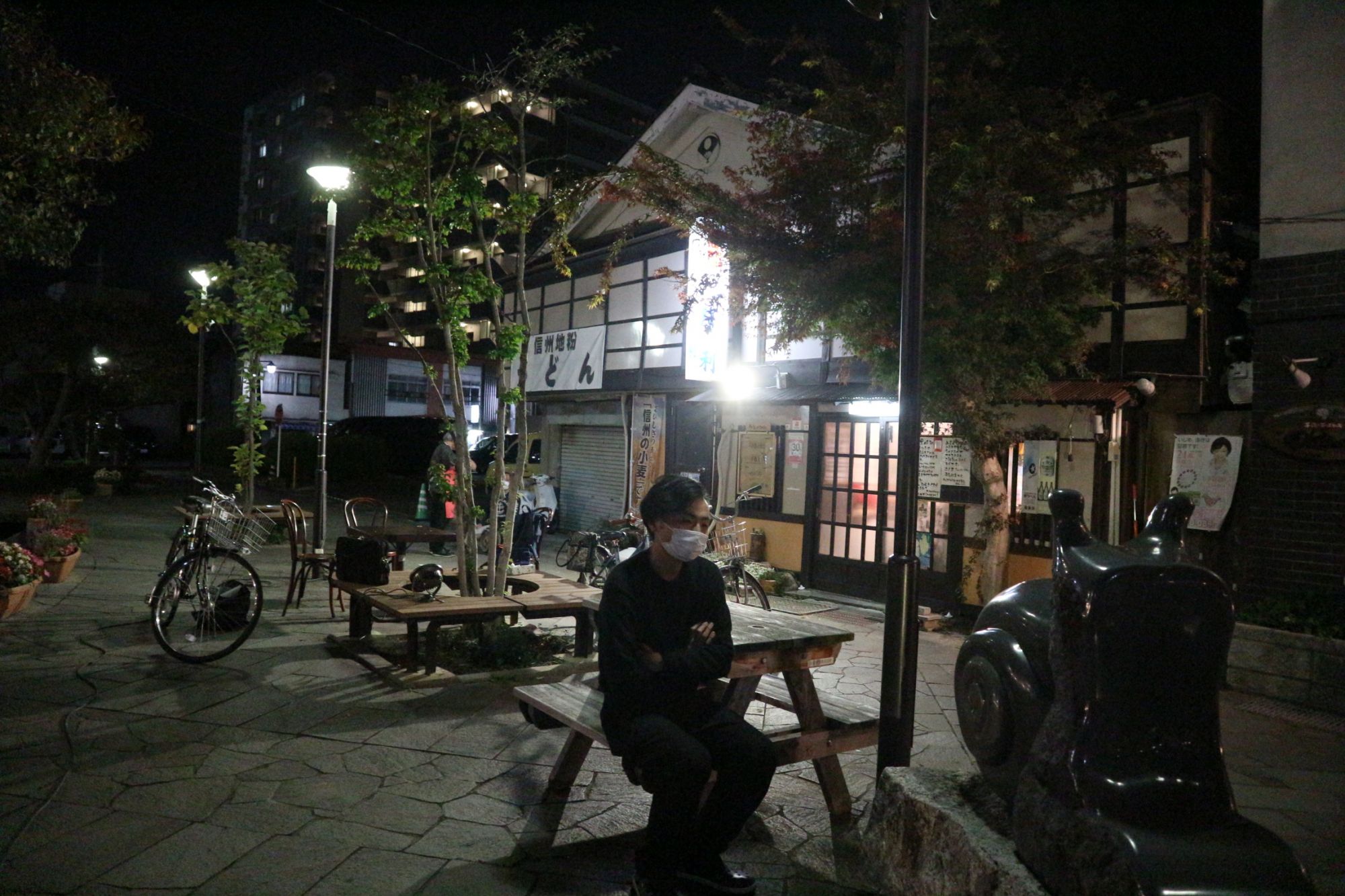 ここ辰巳の庭でも始まりました。日が落ちて辺りは暗くなった18時過ぎに「みどり食堂」に出かけました。