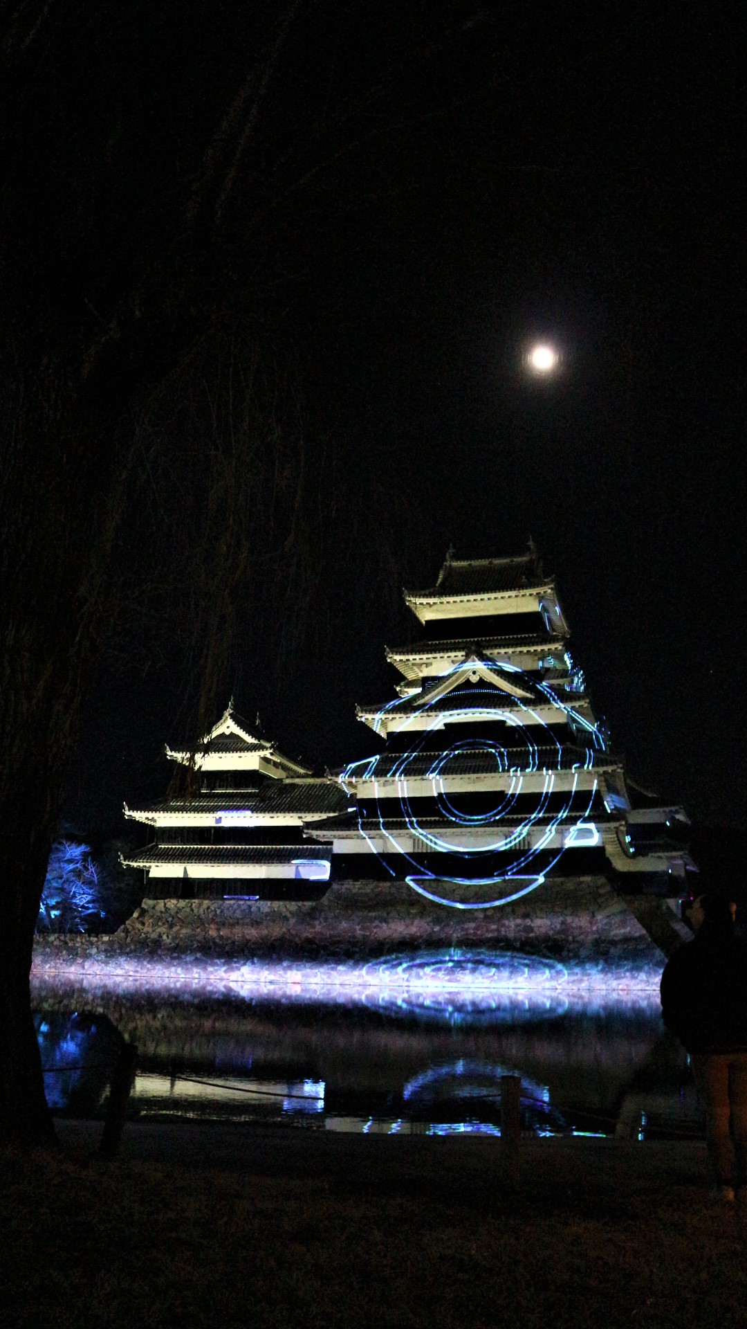 月夜の松本城 レーザープロジェクションマッピングクリスマス演出が始まりました!