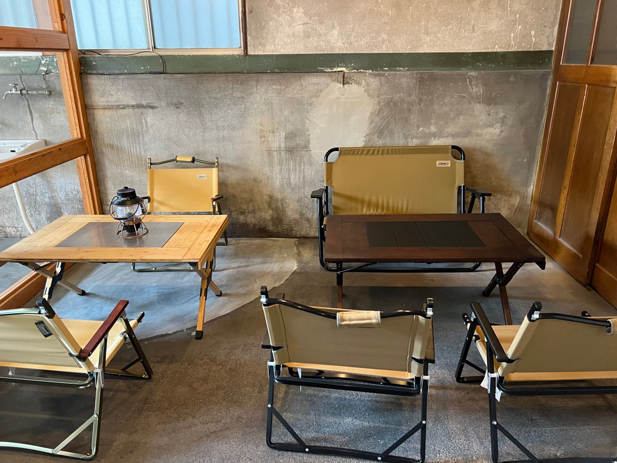 入り口から左手の奥の部屋 キャンプ用のテーブル椅子セットが置かれアウトドアな気分を味われるかもしれません。