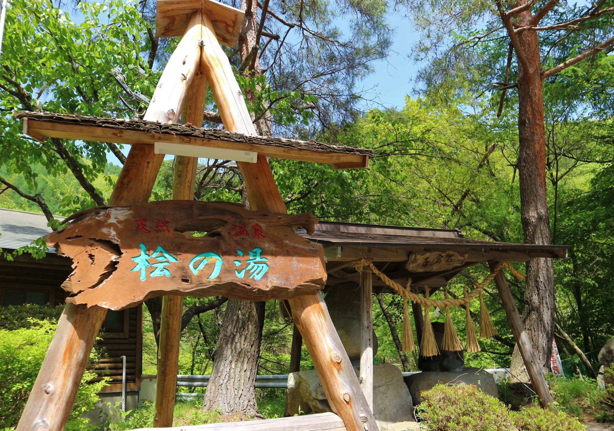 天手力雄命が戸隠に天の岩戸を運ぶ途中で休んだとされる神話に由来して名づけられた温泉です。松本市内から車で約45分、県道67号線を美ヶ原高原方面に上がっていきます。2軒の旅館と1軒の公共温泉施設「桧の湯」があります。