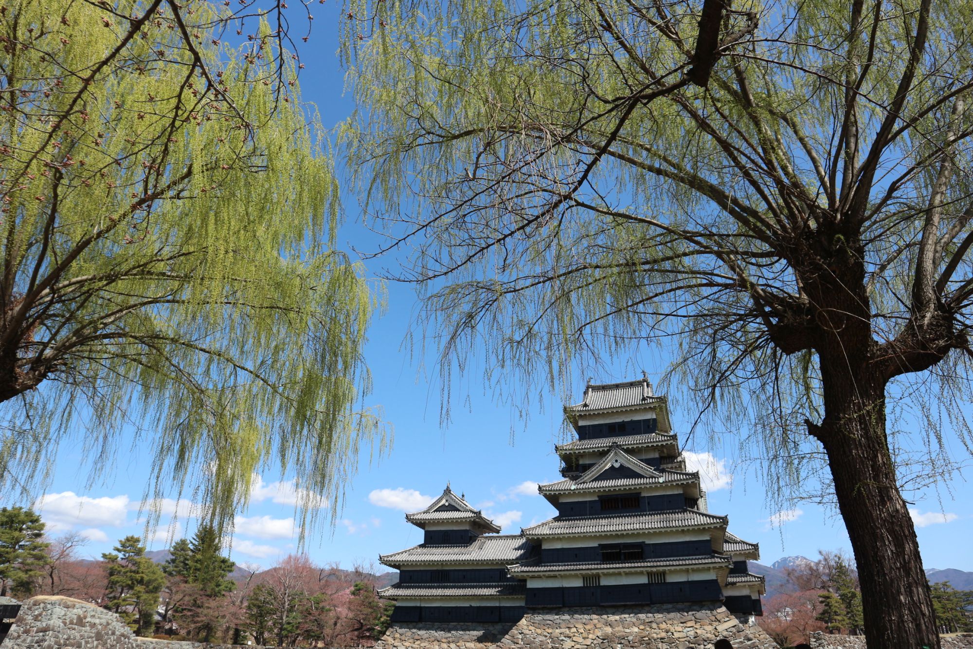 松本城と柳の新緑