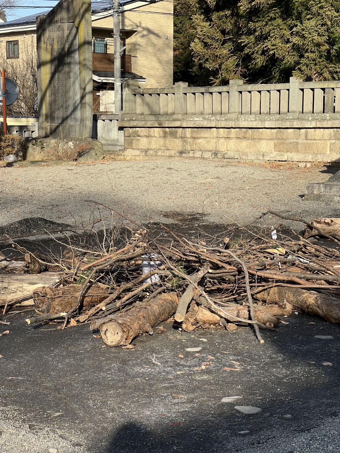 12月31日 境内にはかがり火用の木が置かれていました。