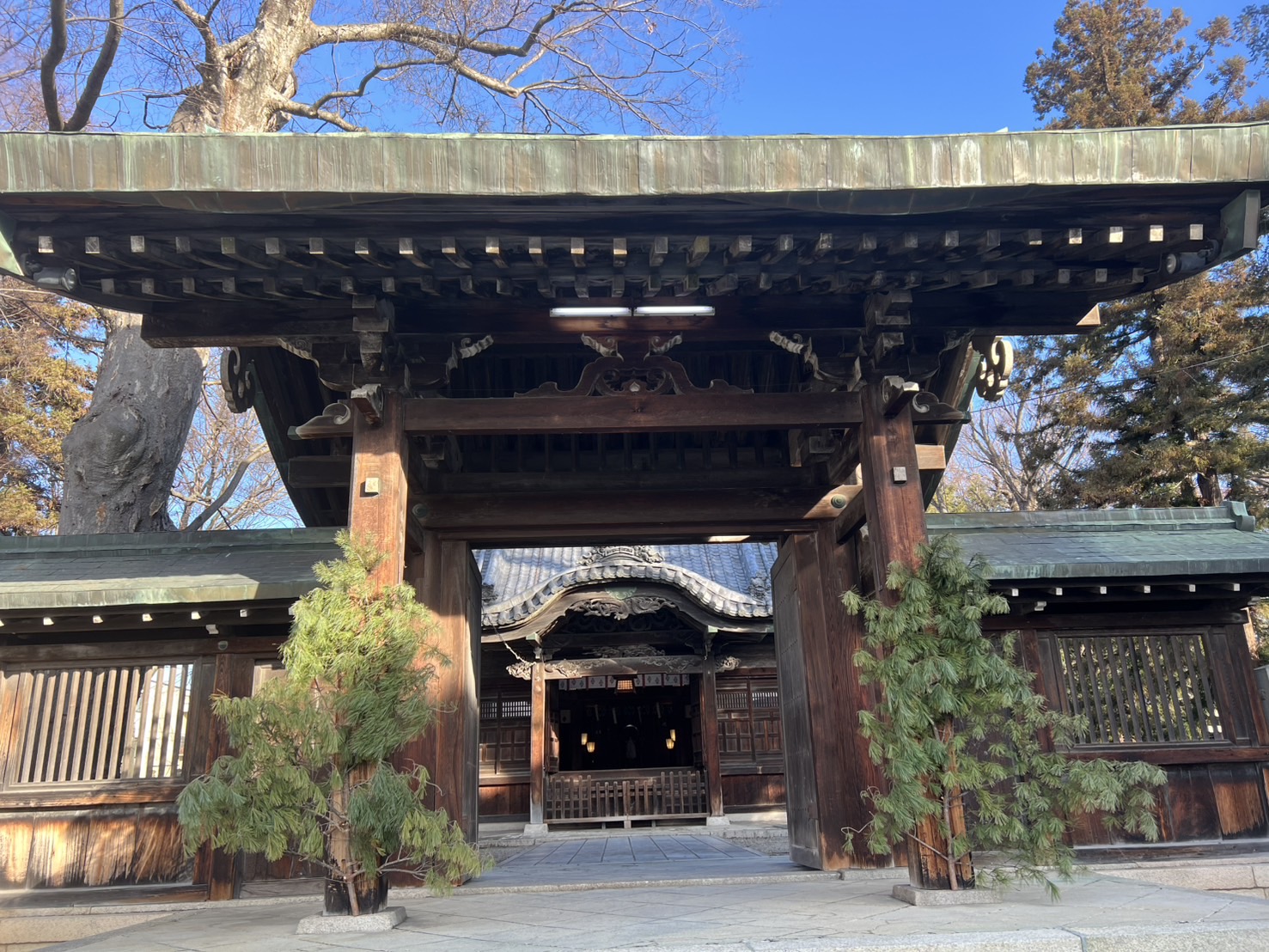 学問の神である「天神さま(菅原道真公)」を祀る深志神社です。まつもと市民芸術館の隣接しています。