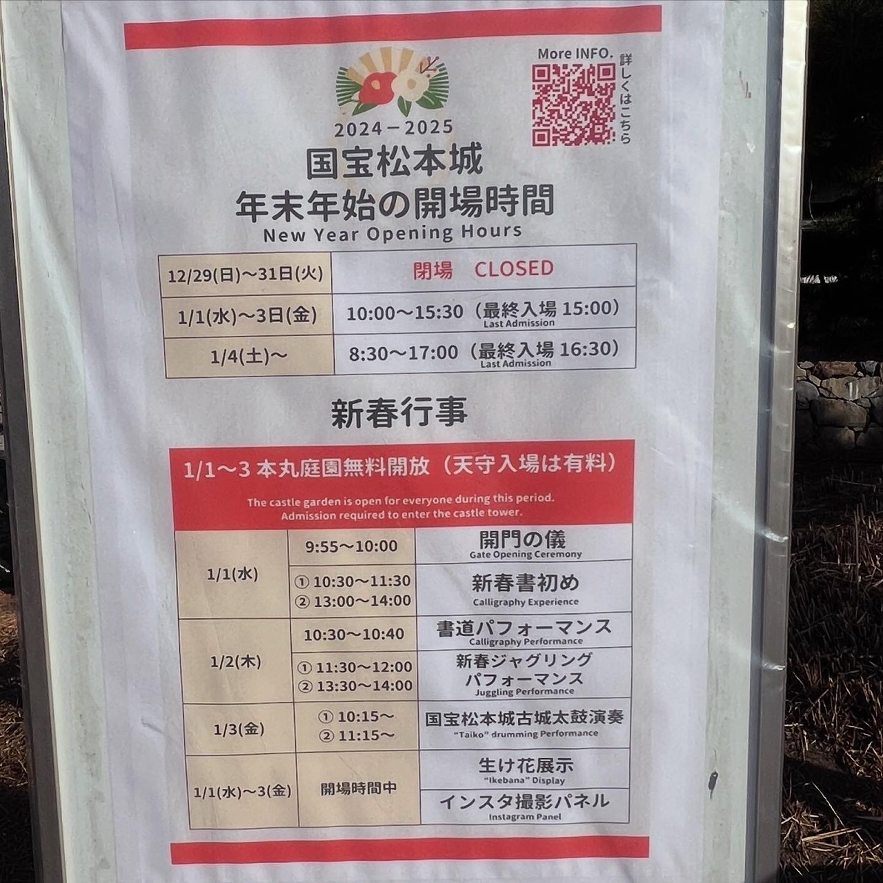 松本城の年参りの開場のご案内