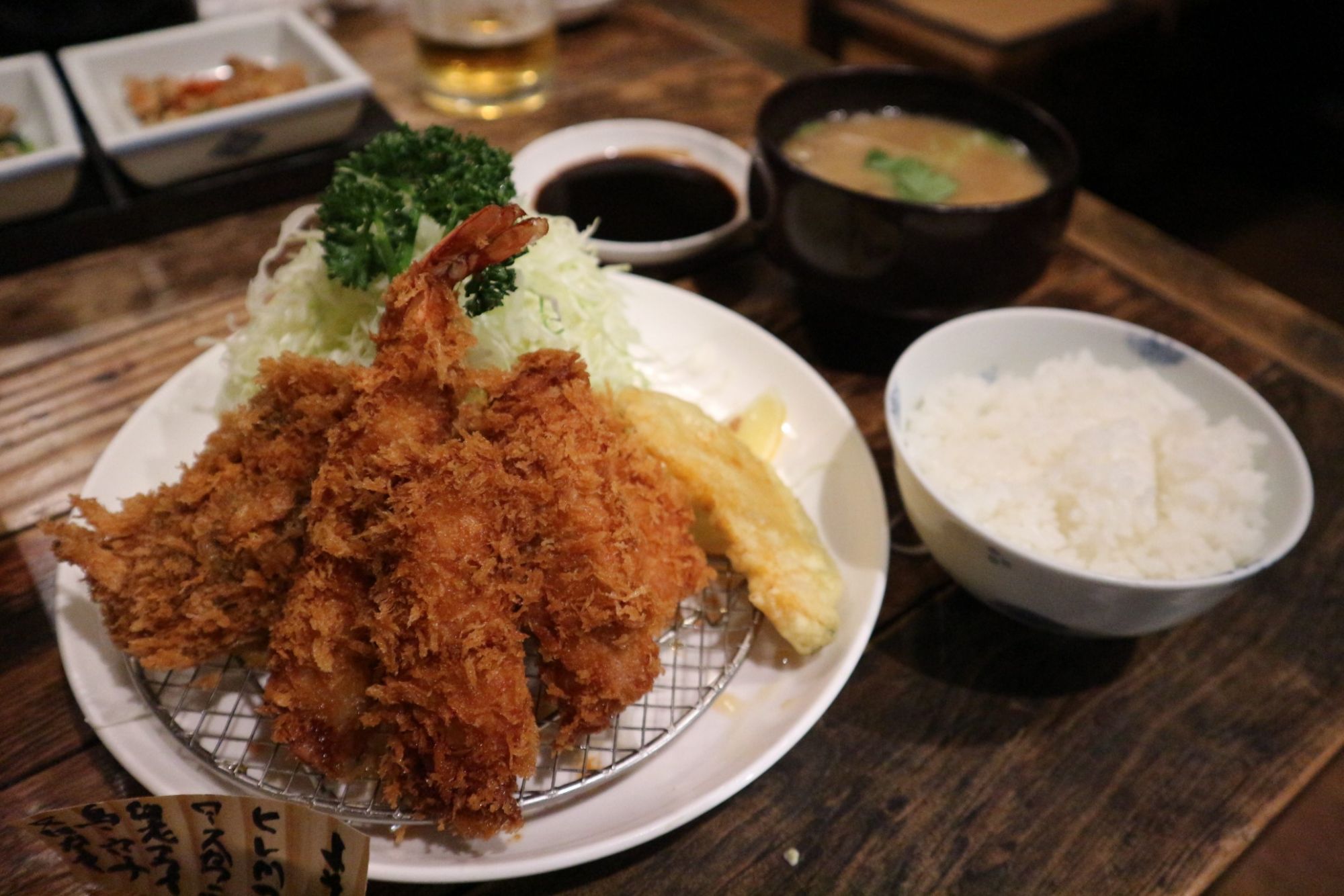 2種のとんかつとエビフライ 残りは選べるのですが今回は冬の名物蠣を注文しました。
