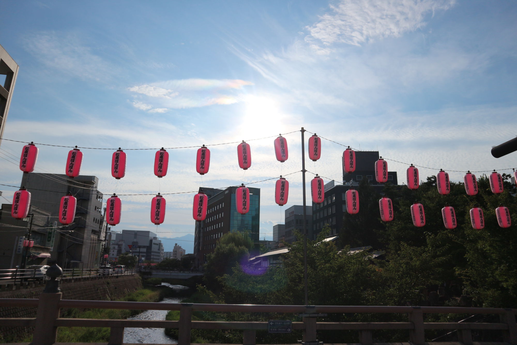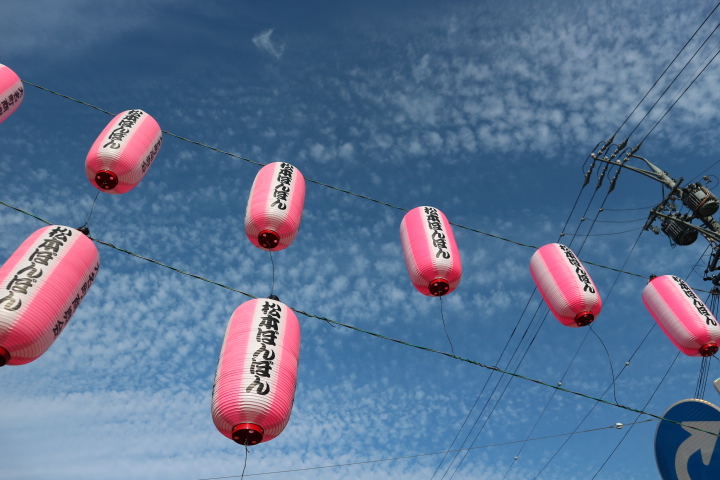 今年もピンク色の松本ぼんぼんの提灯が取付られました♪