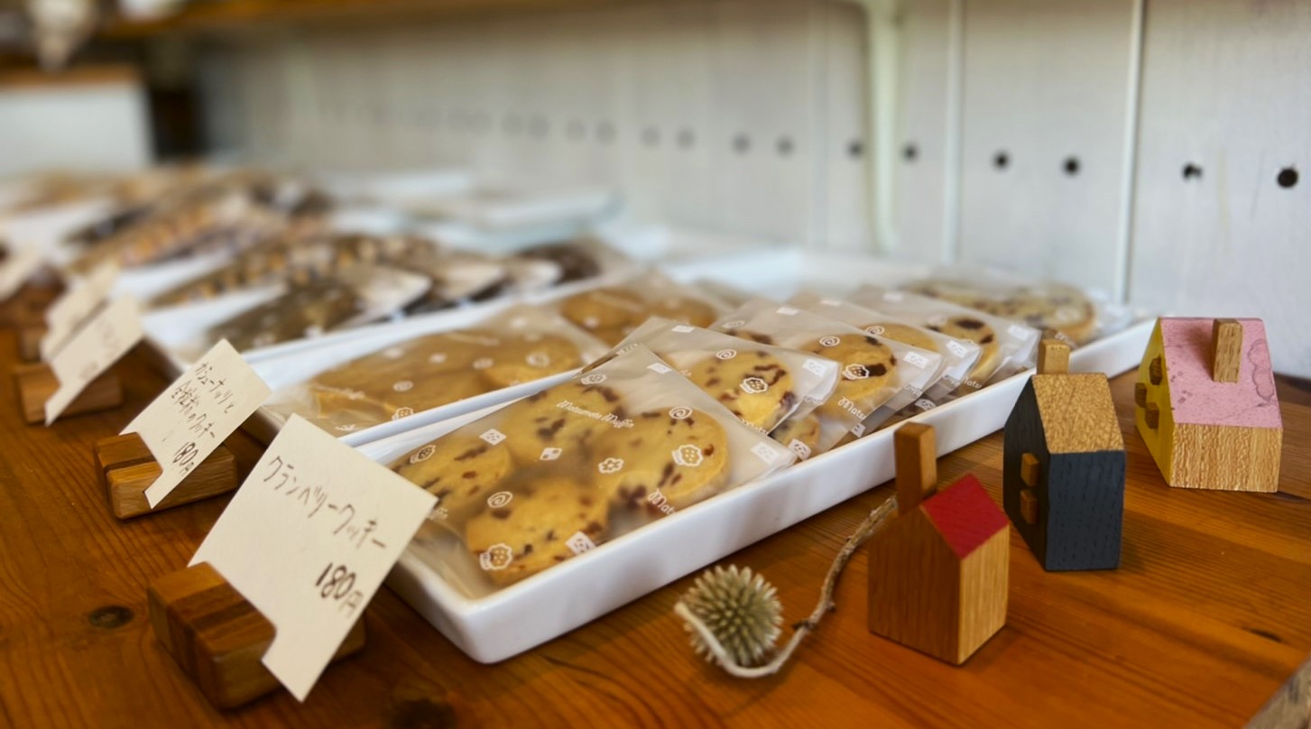 材料は無添加で安心な素材を使った手作りのお菓子が並んでいます。