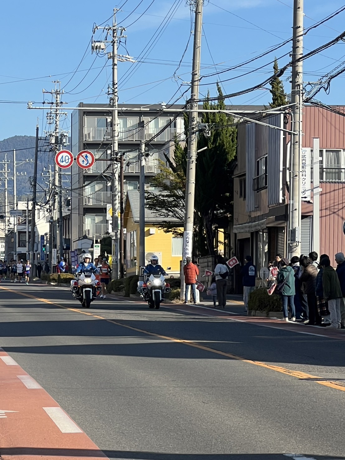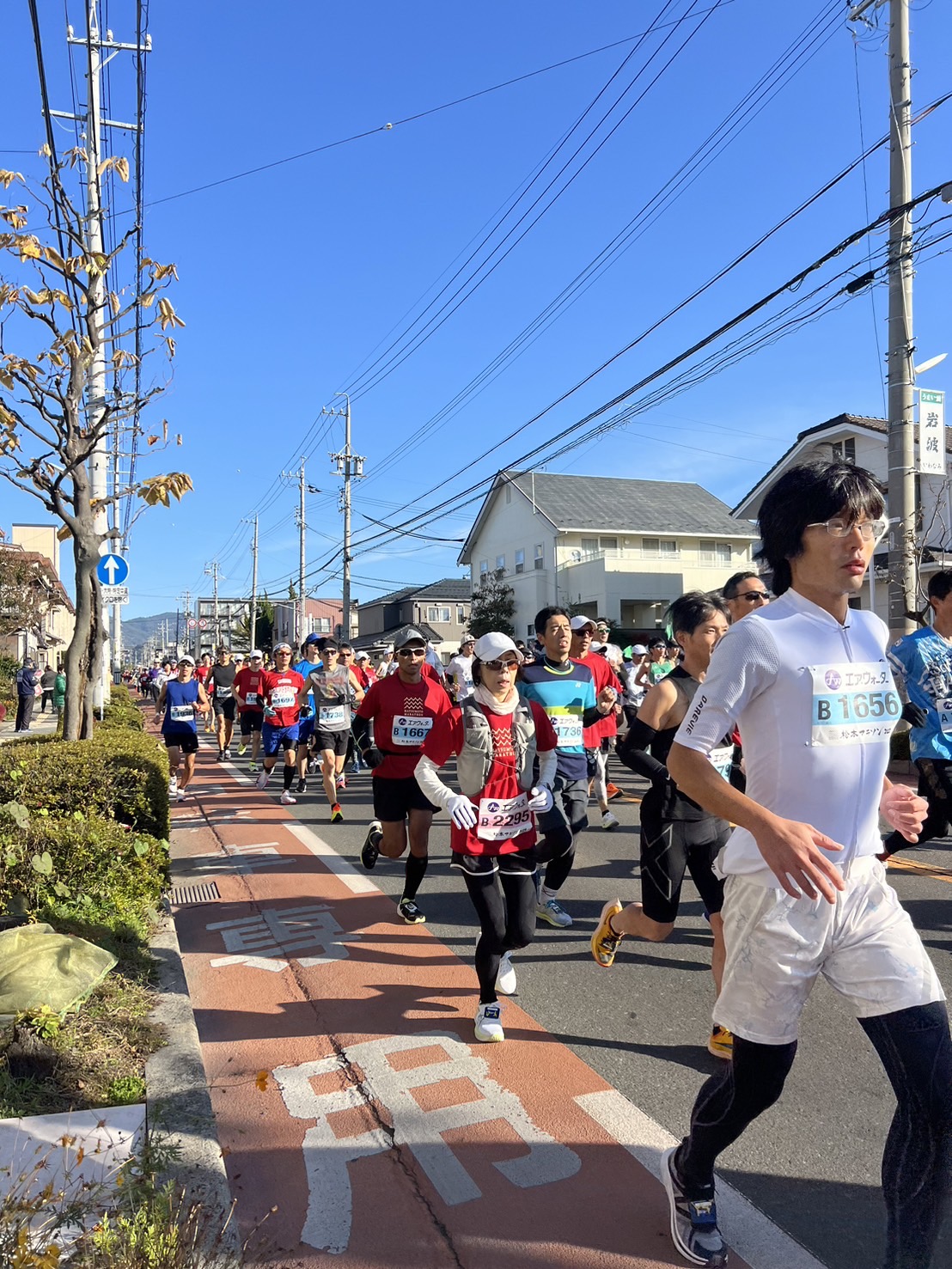 ほど近い北松本バス停前付近で待つことたった4分で先頭グループの姿が見えました。