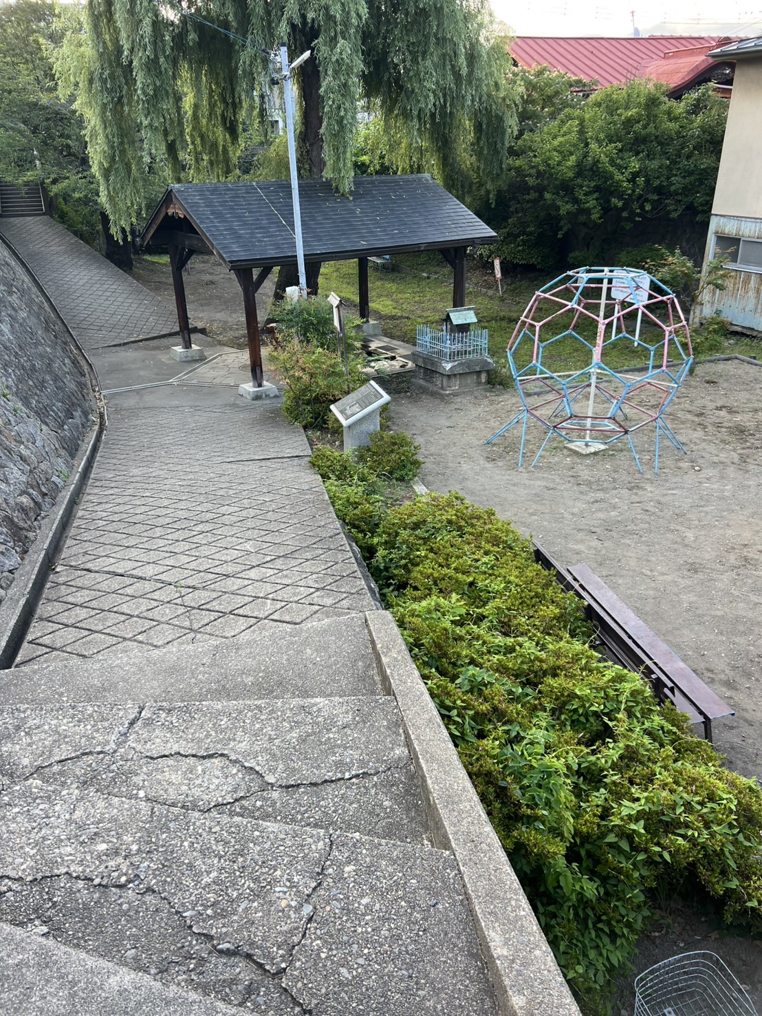 階段を昇り道に戻ります。ここから眺める総掘りの風景が好きです。特に桜の時期は最高です!