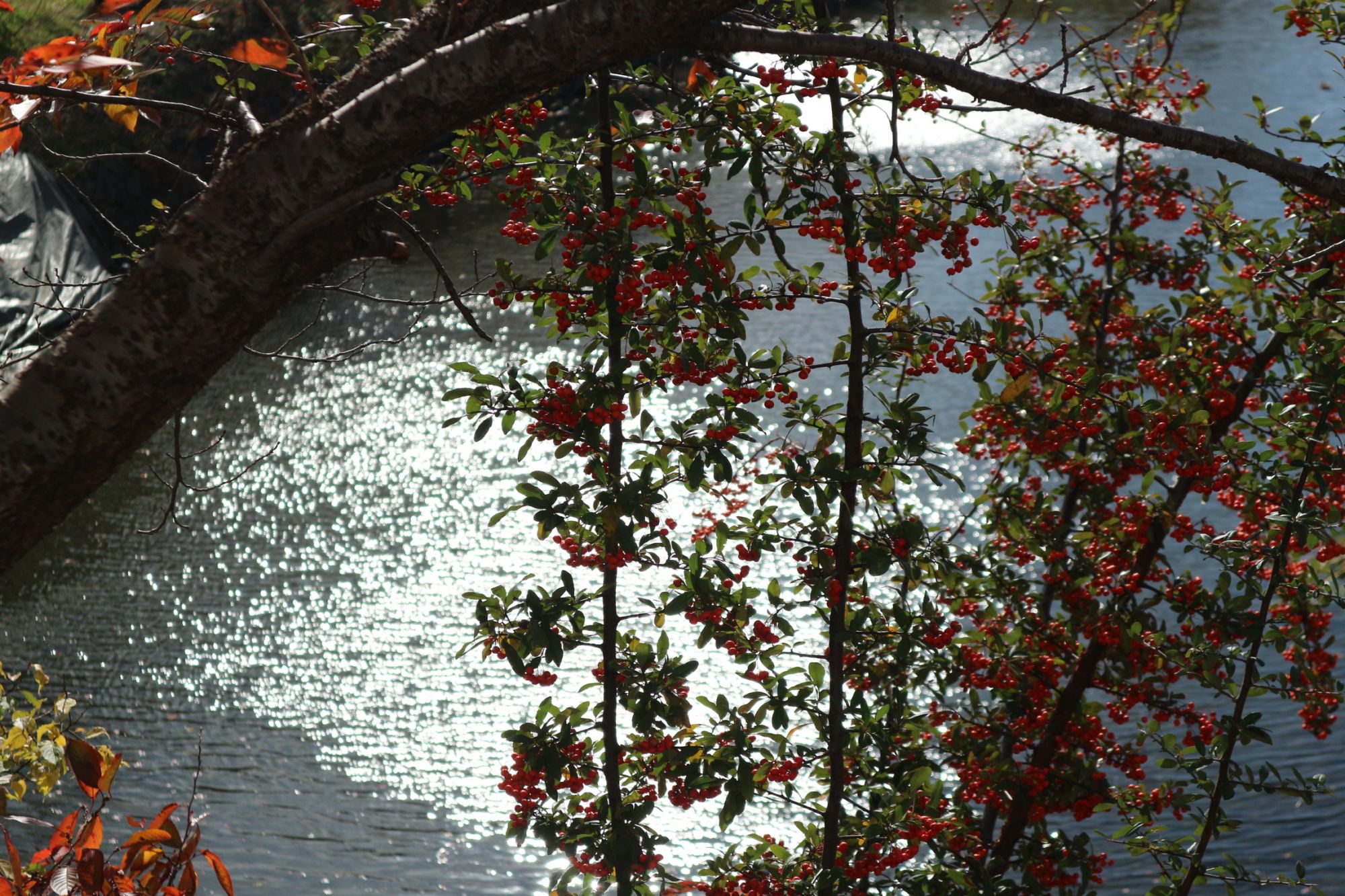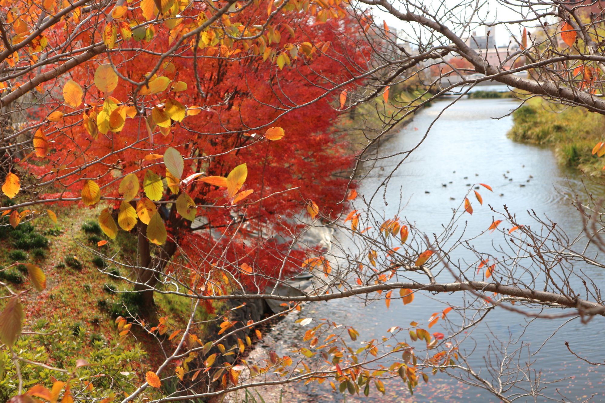 松本城 総掘りの紅葉情報 紅葉 国宝松本城 2019.11.19 ♥58 11月18日 強風が吹き荒れ木の葉が舞っています! 桜の花が咲く頃は、桜にばかり気をとらえていて気がつきませんでしたが、真っ赤な紅葉が植えてありました。 総掘りの水面に落ち葉が浮かんでいます。 風が強くあちこちに落ち葉が舞っていました。静かに冬の足音が聴こえてきました。 Tweet