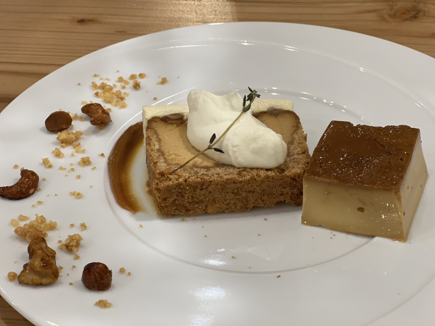 別腹でデザートも チーズケーキと硬めのプリンは、大人の味