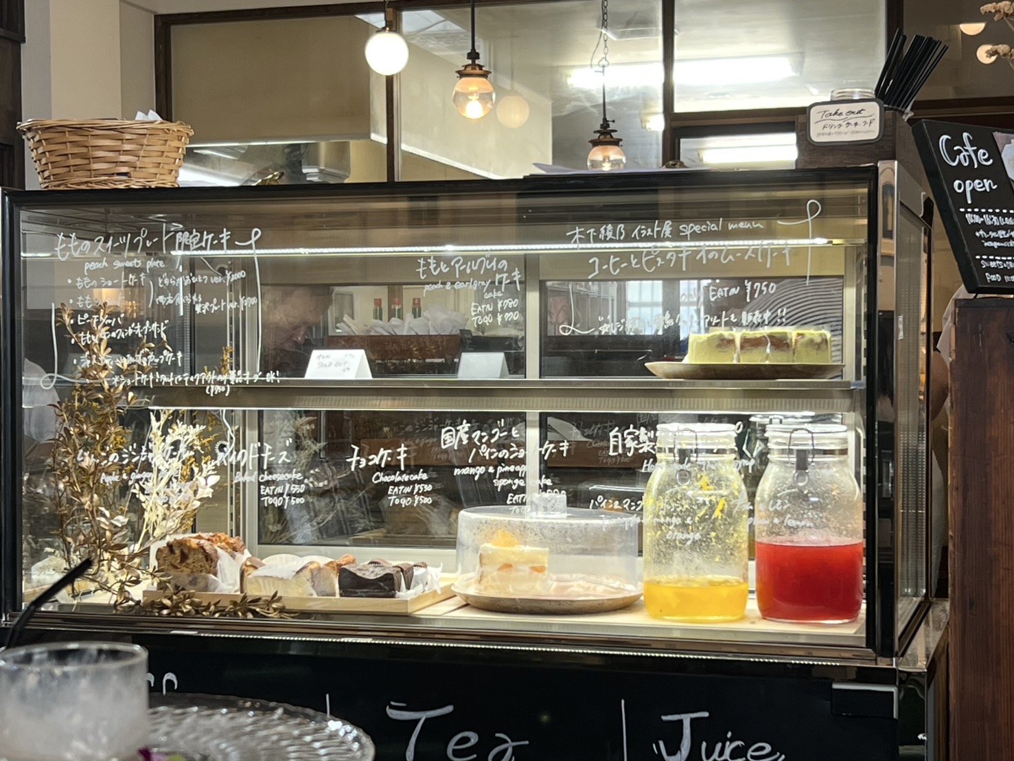 向こうに見えるショーケースも美味しそうなケーキが見えます。