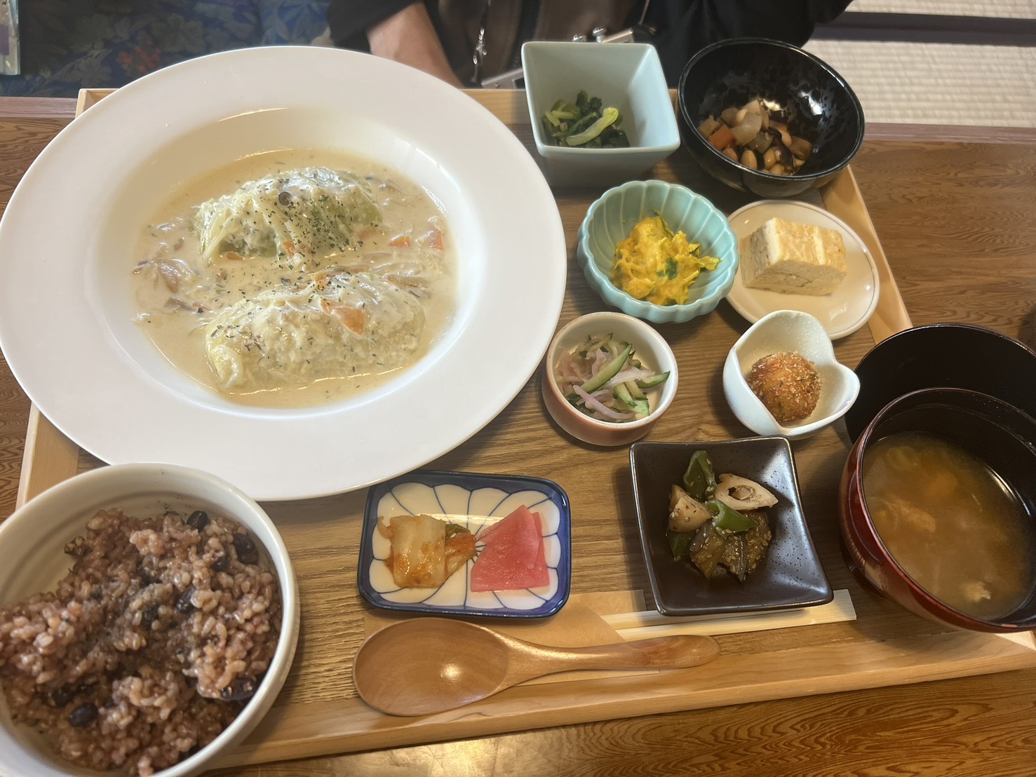 ご飯は白米と酵素玄米から選べます。メインはもちろん小鉢はどれも美味しくて完食!