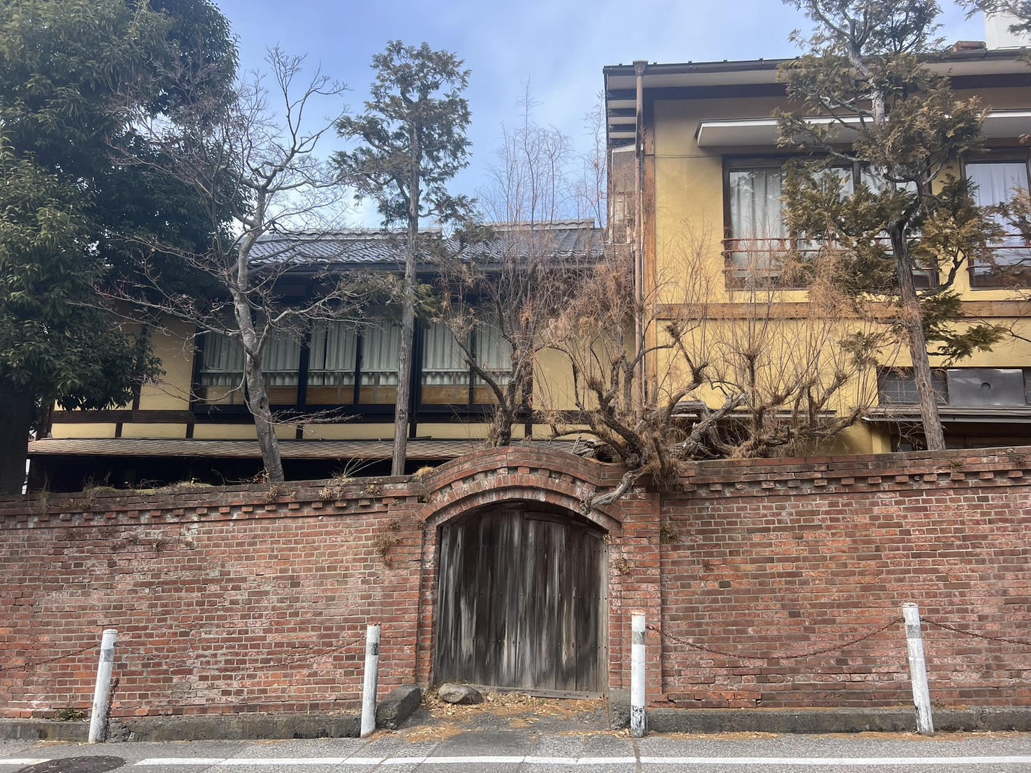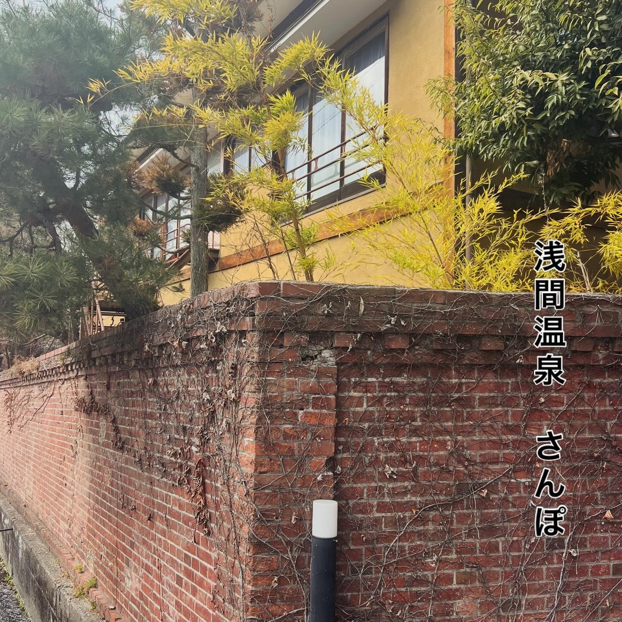 尾上の湯旅館の赤レンガ塀 歴史を感じる美しいレンガ塀です。