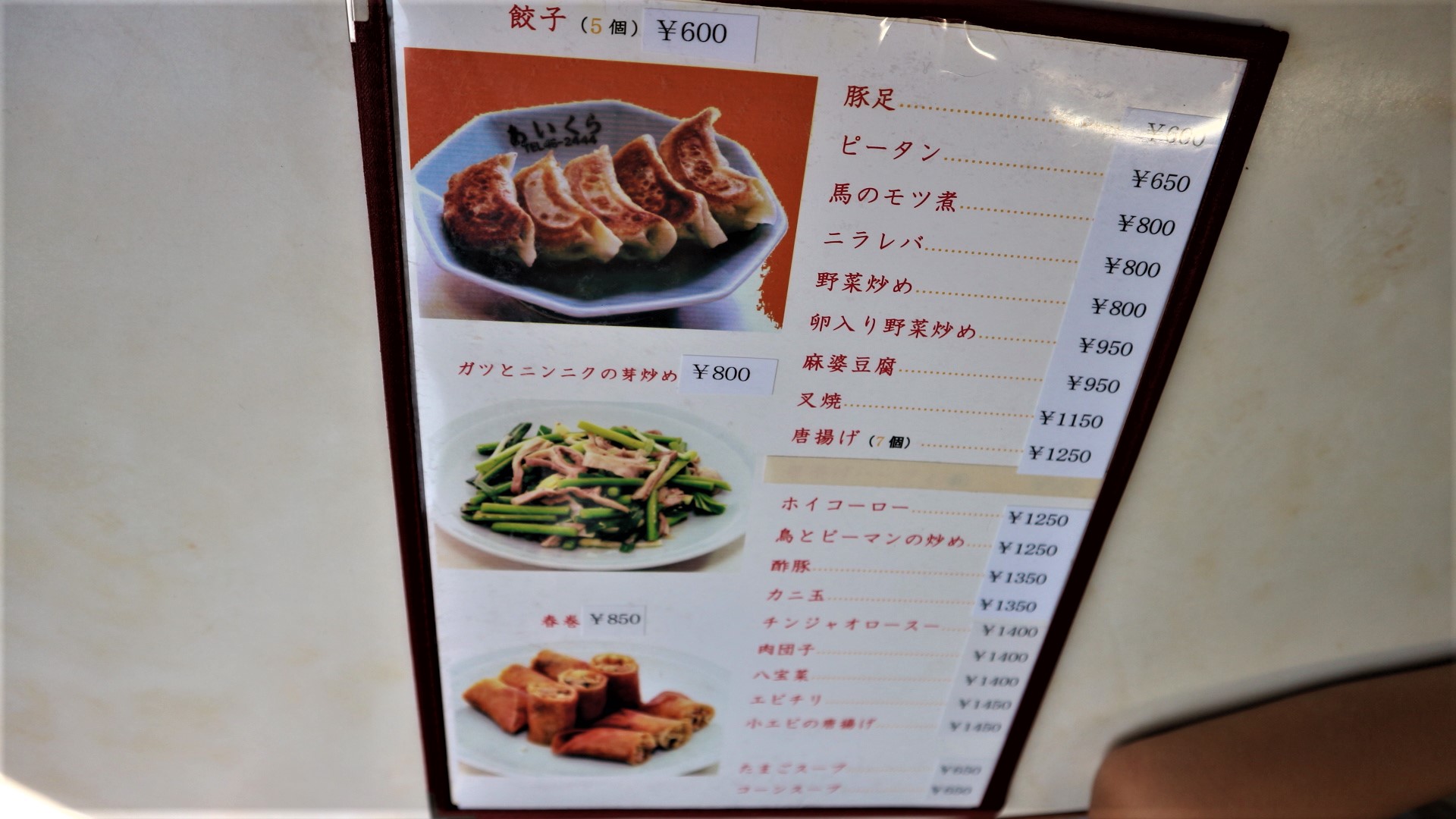 とんかつ入りスタミナラーメン1100円も人気のようです。中華料理のメニューも豊富です。