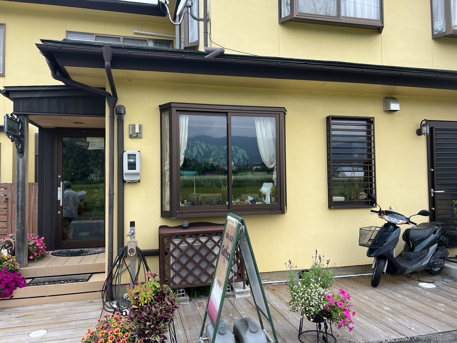 松本市中心市街地から南 田んぼが広がる住宅地にある民家の1階を喫茶店にしたお店があります。