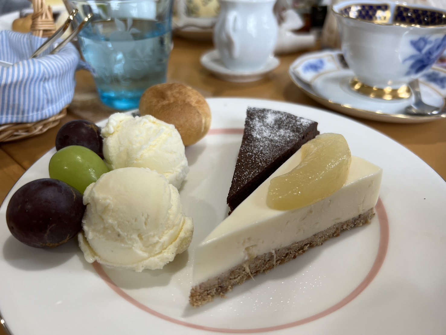 2種のケーキと2種のアイス(なかやす牧場の手作りアイス お好きなものを選べます)とミニシュークリーム付き 500円
