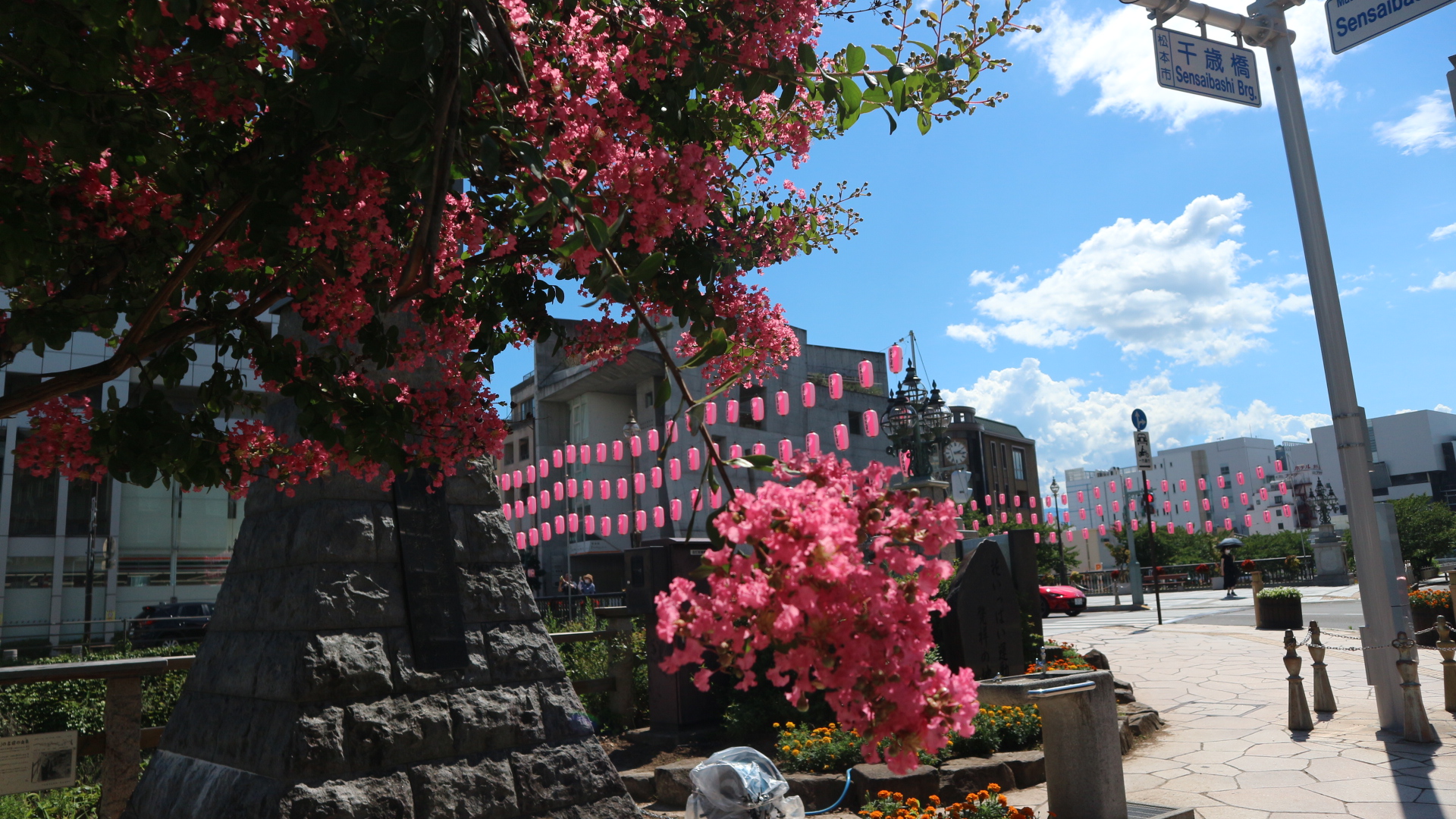 松本の街中では、あちらこちらに濃いピンク色のサルスベリの花が見頃です。