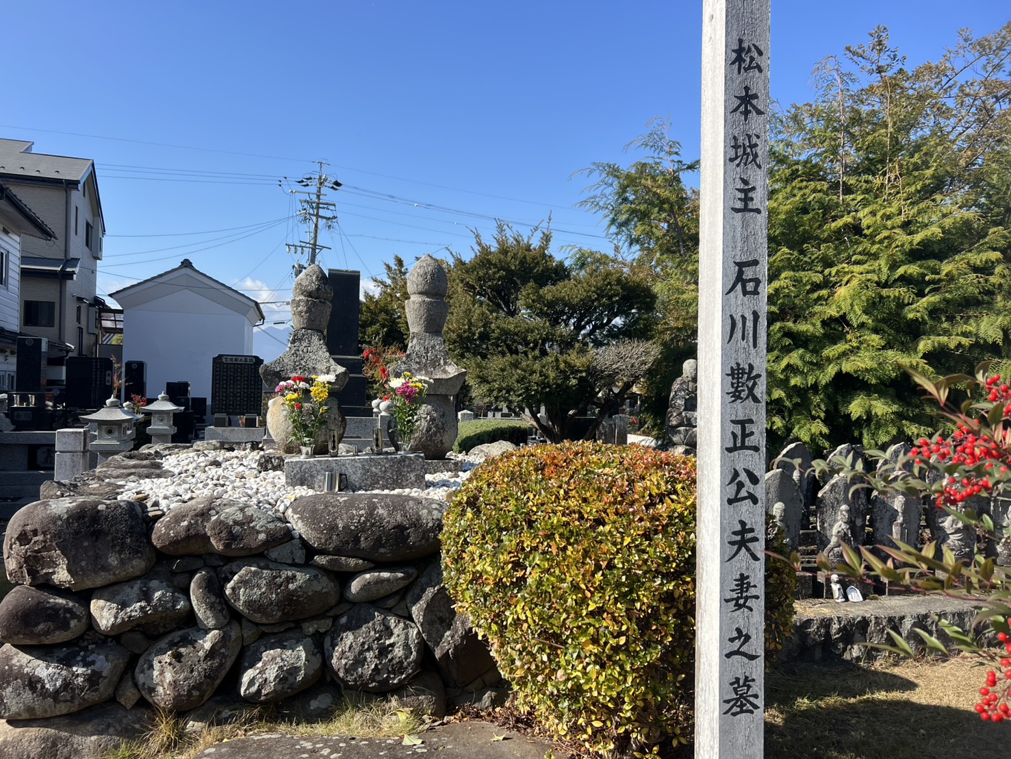 松本城藩主の石川数正公夫妻の供養塔も祀られています。