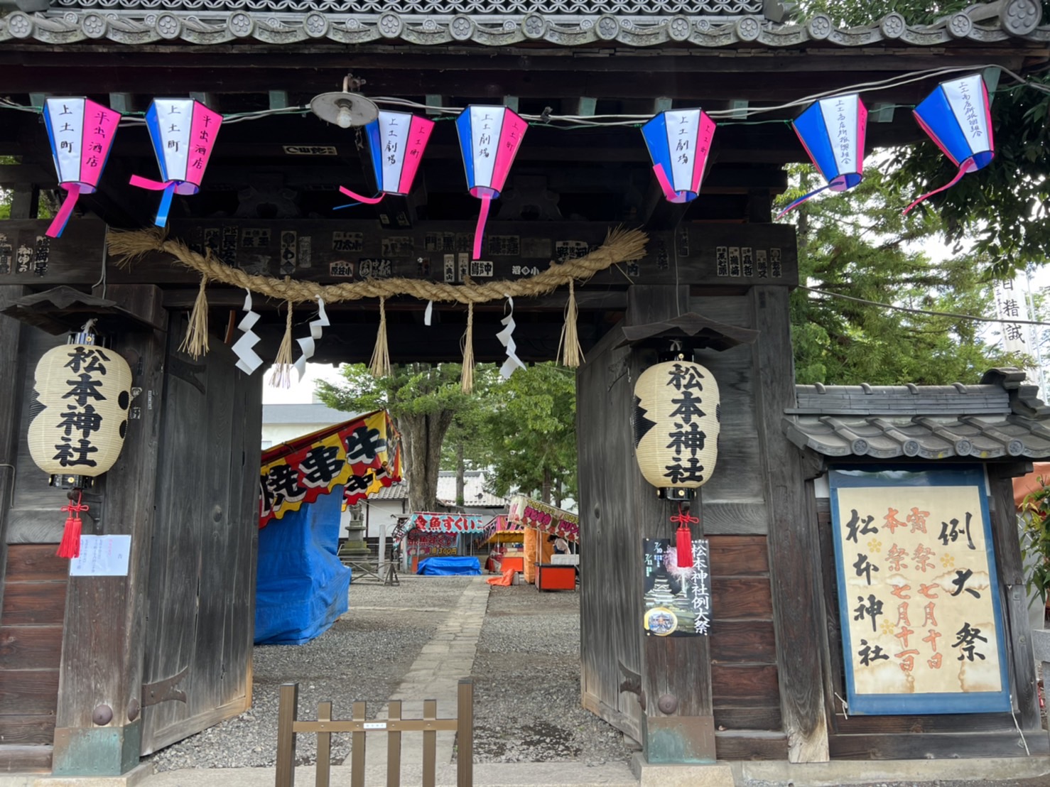 祭りの準備 松本神社例大祭 イベントレポート 神社・仏閣 松本さんぽ 2023.7.10 ♥68 7月10日(月)朝 松本神社に立ち寄りました。 毎年7月10日・11日は松本神社例大祭が執り行われます。 松本神社は松本城の北隣に鎮座する神社で「五社(ごしゃ)」と呼ばれています。前身は縁結び・郷土発展の神として信仰を集めた暘谷(ようこく)大神社で城ともゆかりの深い神社です。地元では夏の到来を告げるお祭りであると親しまれています。 松本神社 空にたなびく旗には、なんと書いてあるのか読めない文字 大正三年十一月吉日 祭り 境内では、祭りの準備が進んでいます。 祭りの準備 松本神社境内 祭りの準備2 松本神社御拝殿 御朱印受付時間 御朱印 松本神社例大祭 松本城がすぐ前に見えます。 松本城 Tweet