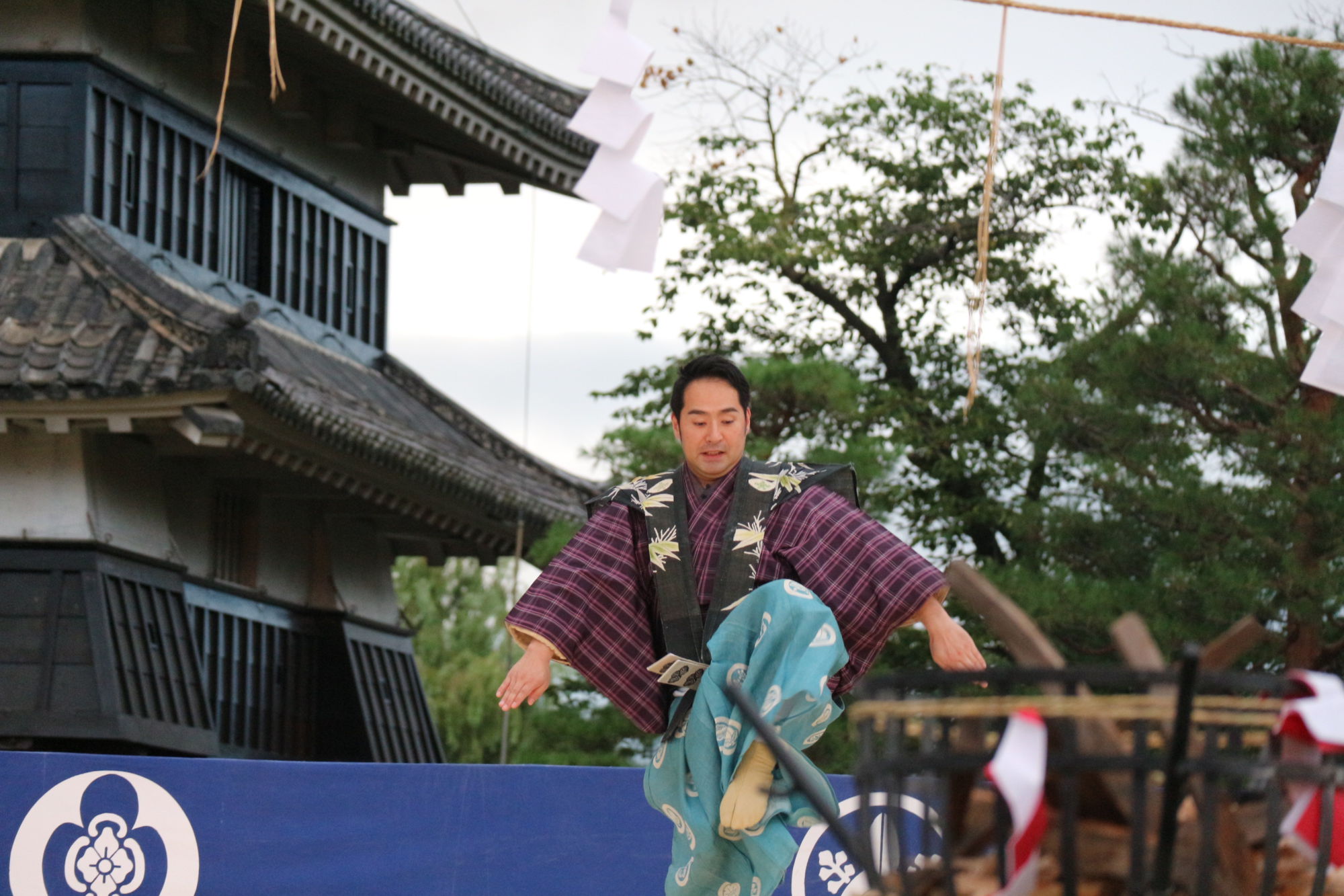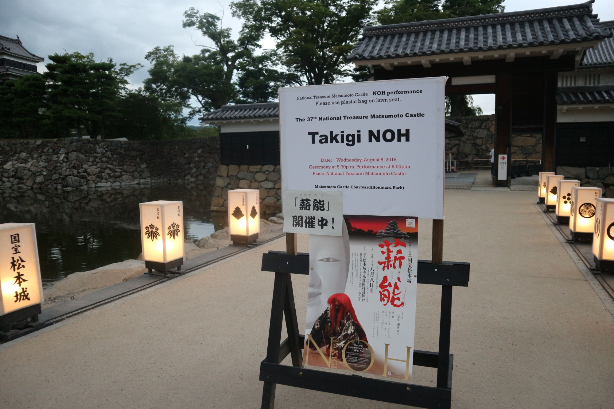 八月八日(水)国宝松本城本丸庭園特設舞台で、台風の進路が危ぶまれましたが、1部プログラム時間の変更がありましたが、無事「第三十七回国宝松本城薪能」が開催されました。