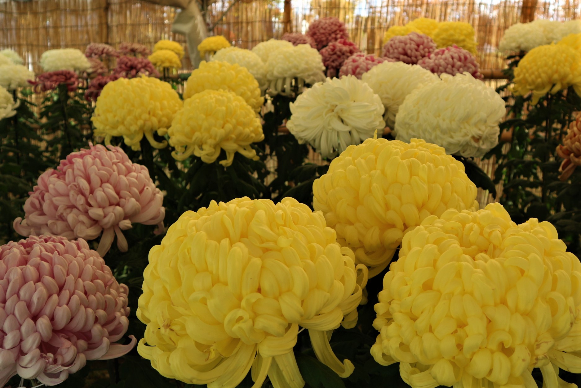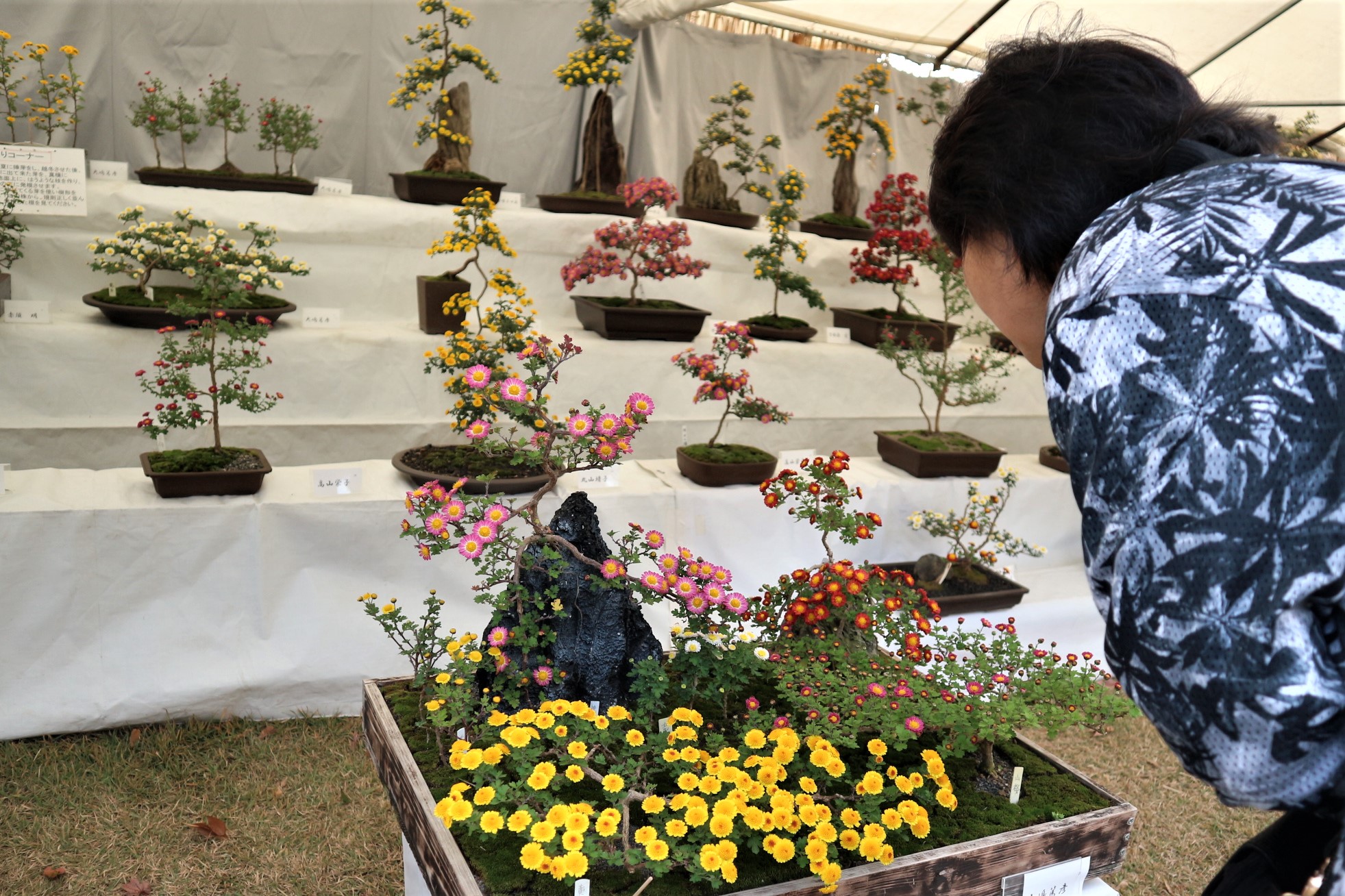 紅葉が見頃の国宝松本城本丸庭園で「第59回 菊花展」開催中