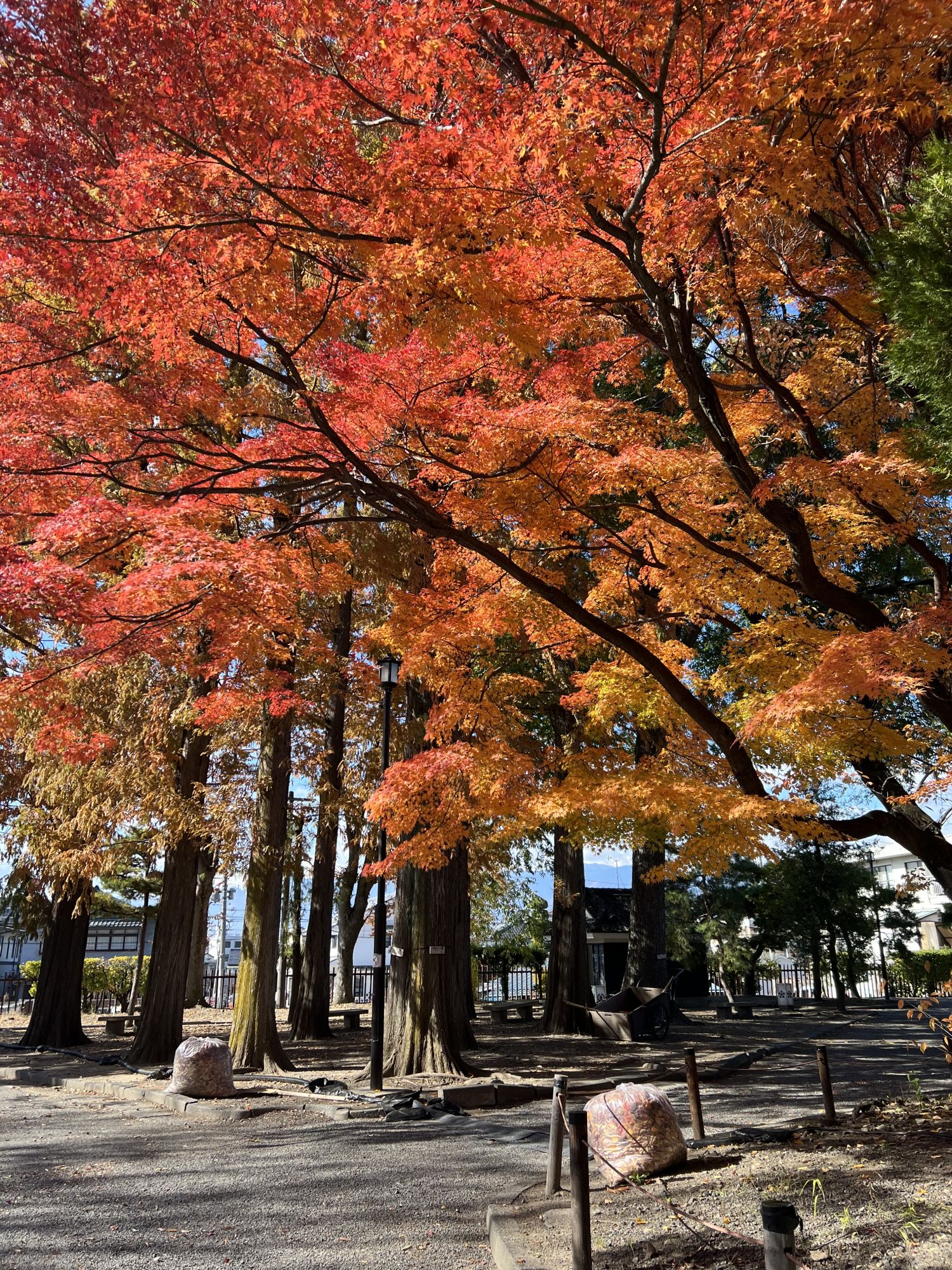 松本城公園 山モミジの紅のグラデーションが見事です!