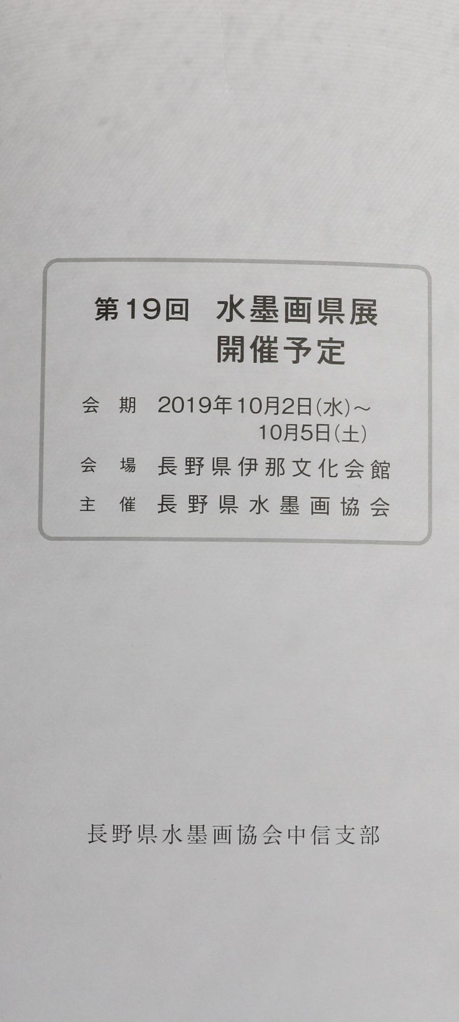 第13回水墨画中信地区展が3月7日~10日(日)キッセイ文化ホールにて開催されています。主催は長野県水墨画協会、実行責任者は長野県水墨画協会中信支部です。自然への熱いまなざしを感じる作品が約90作品ほど展示されていました。信濃現代水墨画協会会長(長野県水墨画協会中信支部会長)の大西勝さんは今回の展示作品は「中国の謝赫(しゃかく)の説く画法、6法の中の骨法用筆と随類賦彩に注力したところを見てください」と話されました、この二つの意味は、骨法用筆が筆の扱い方やテクニックにより対象を的確に捉える手法で、随類賦彩が余白の大切さを認識しデフォルメなどにより対象を的確に捉える手法であると、説明をしていただきました。