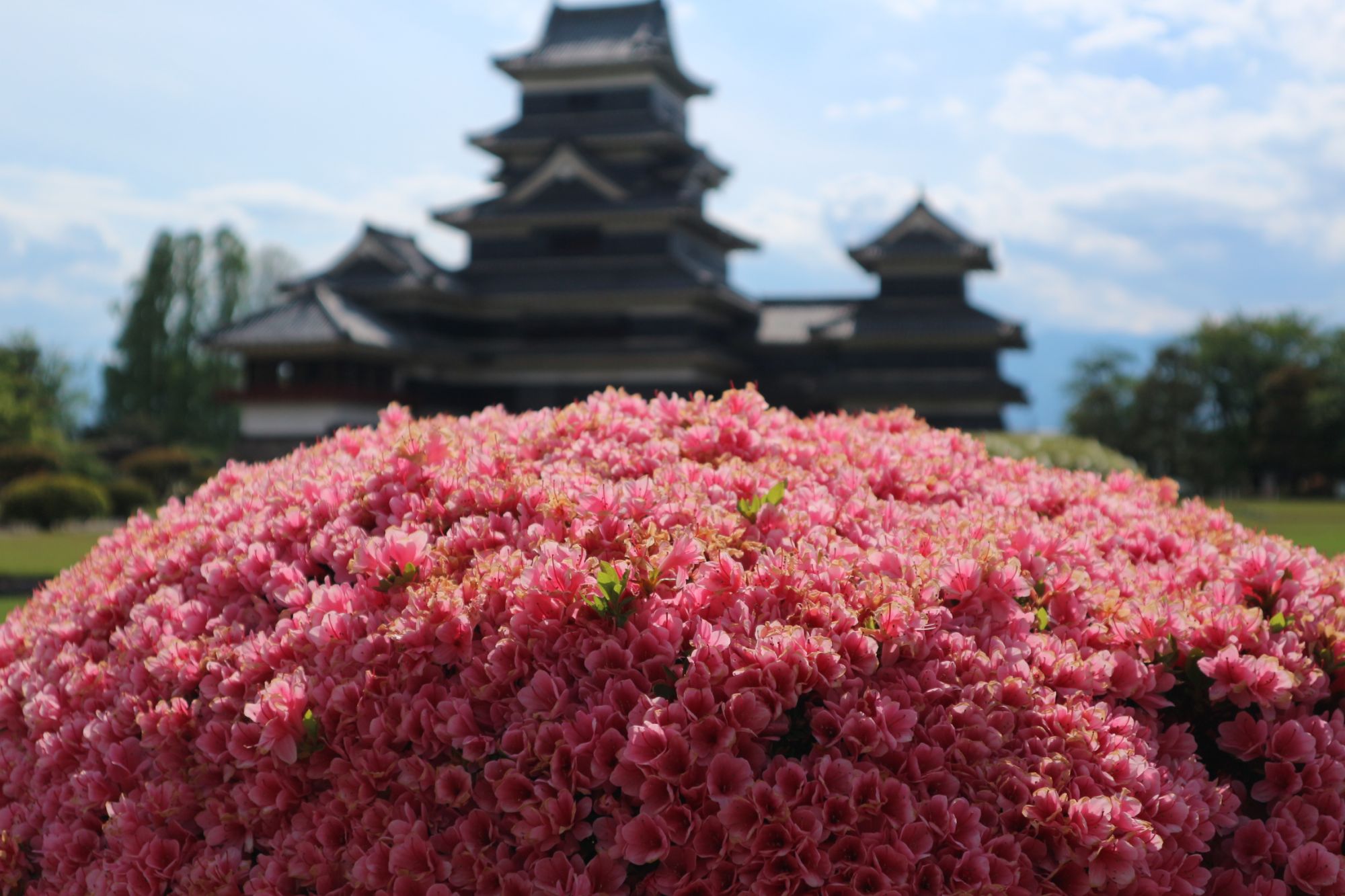 桜が散ったあとの国宝松本本丸庭園は、花盛りです!