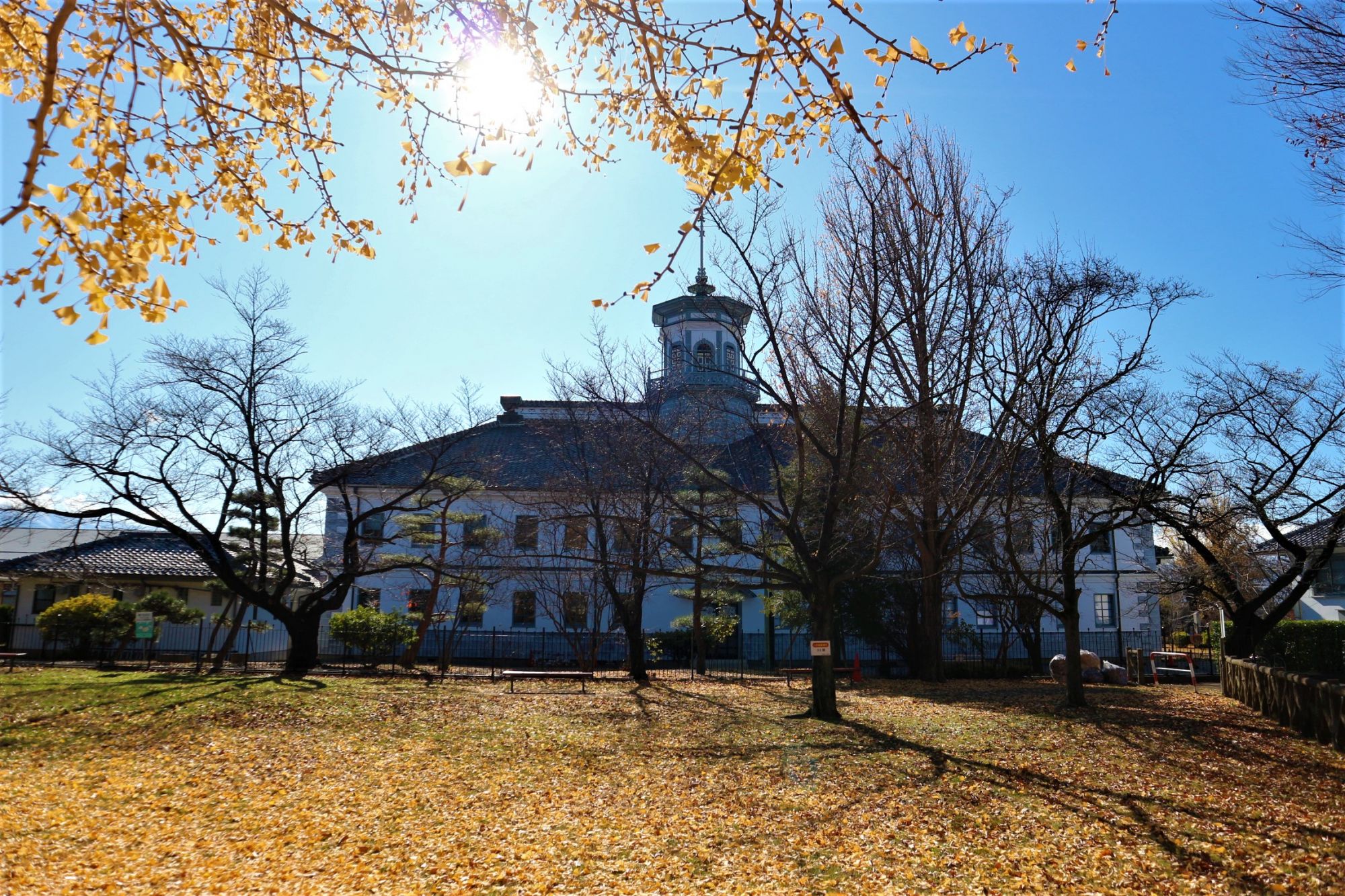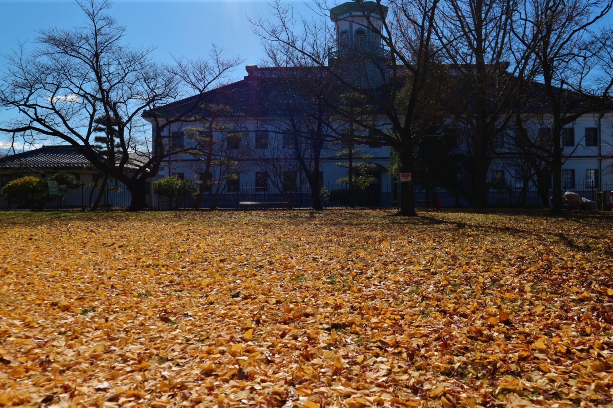 銀杏の絨毯 国宝旧開智学校校舎周辺 国宝旧開智学校校舎 紅葉 2019.12.1 ♥81 11月29日(金) 晴れた朝 松本は晩秋の気配 松本市中央図書館横の枯葉の絨毯 国宝旧開智学校校舎の裏の銀杏の落ち葉の絨毯 旧司祭館 国宝旧開智学校校舎 東に見える美ヶ原に積雪が見えます! Tweet