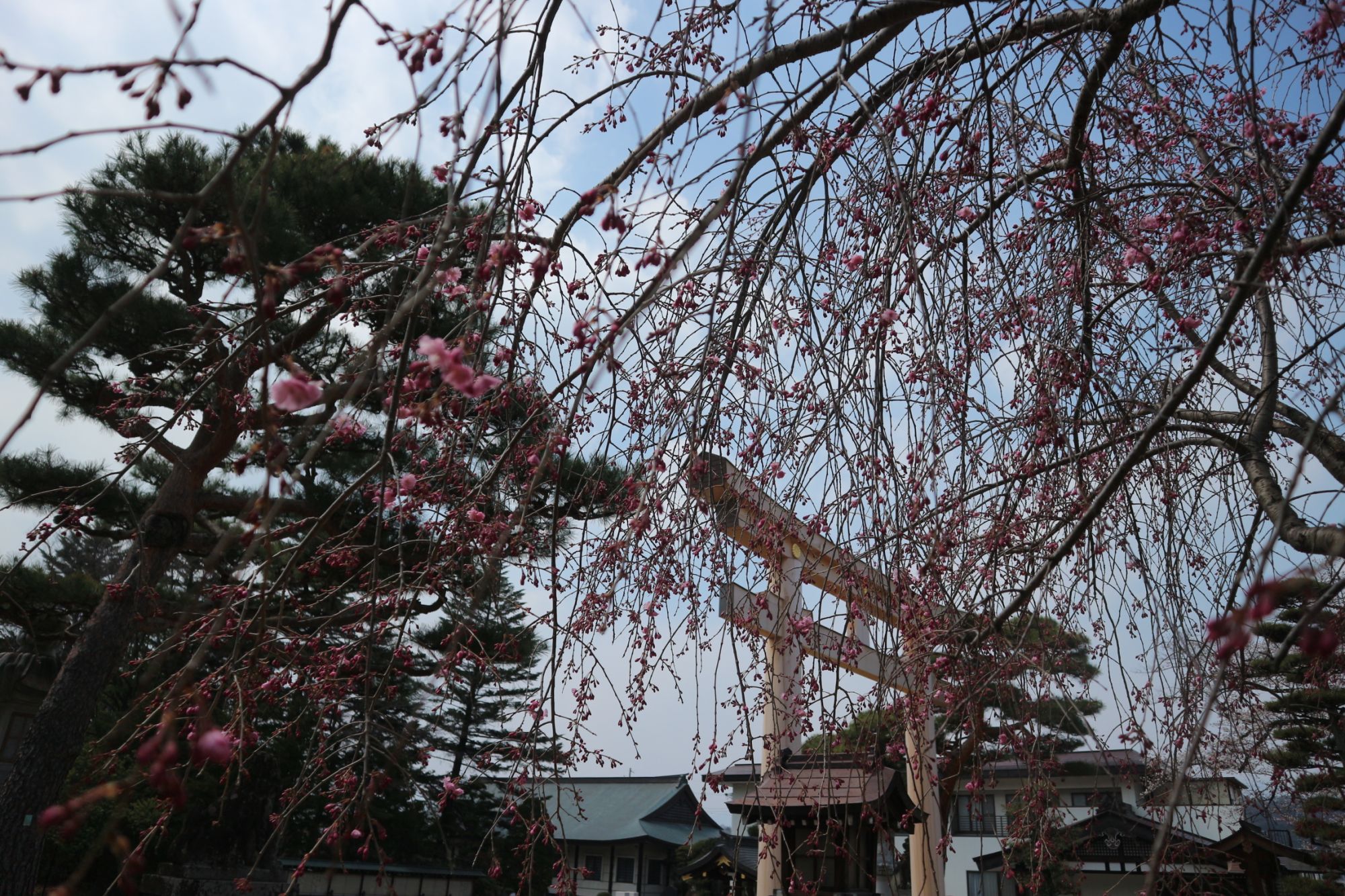 特に目を惹いたのは、御拝殿の裏の咲く大きな枝垂れ桜です。