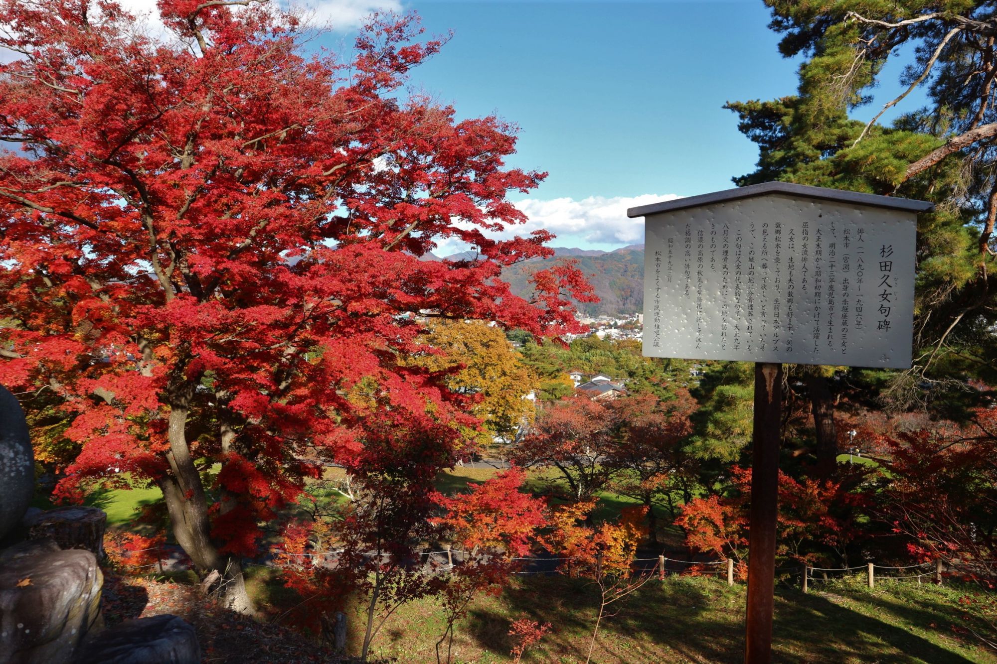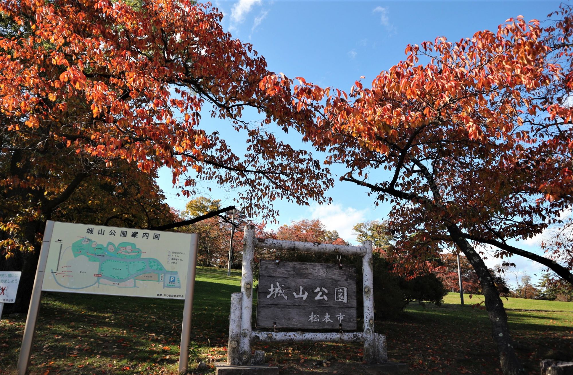 隠れ紅葉スポットー松本最古の城址公園 城山公園-