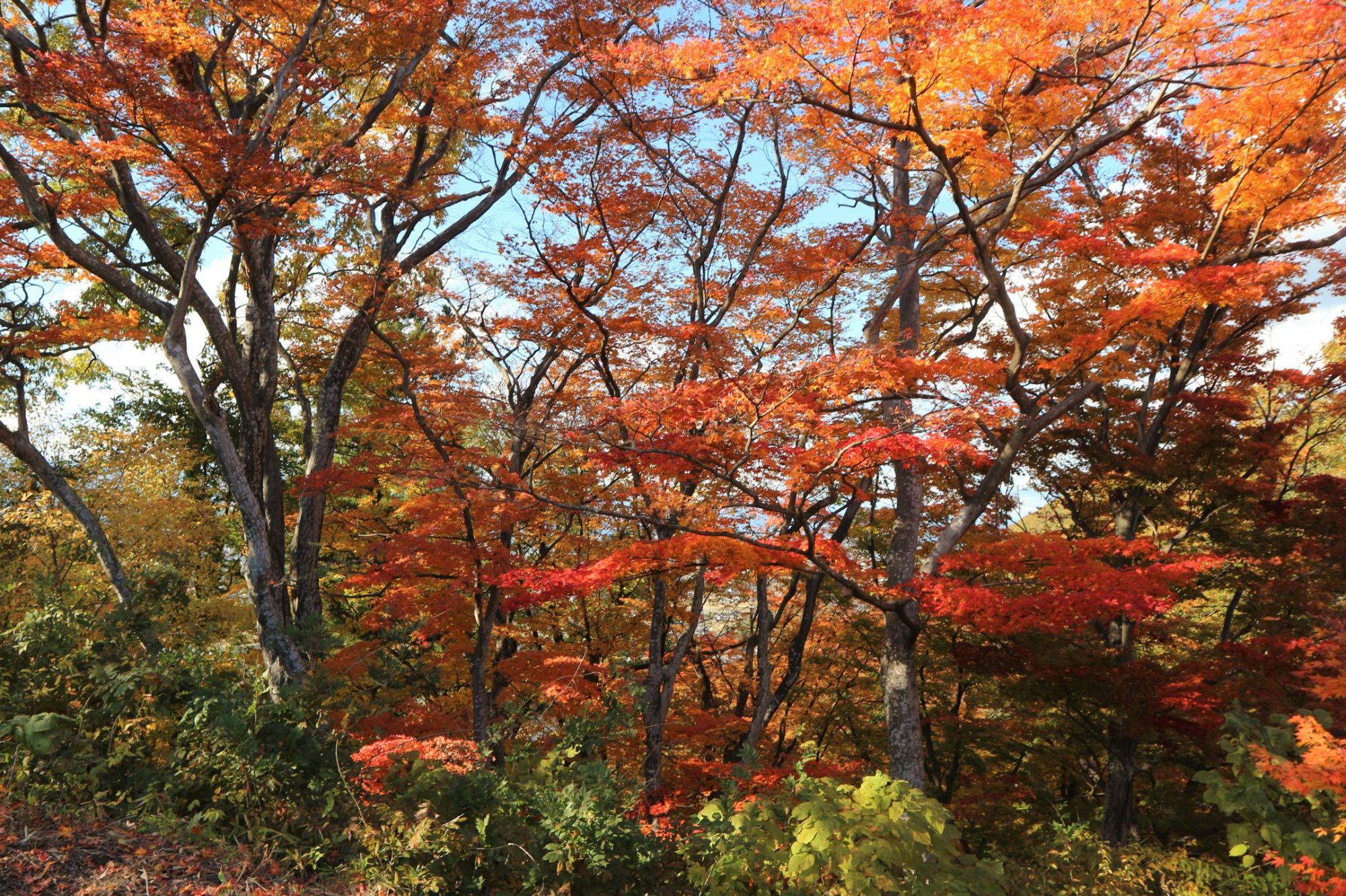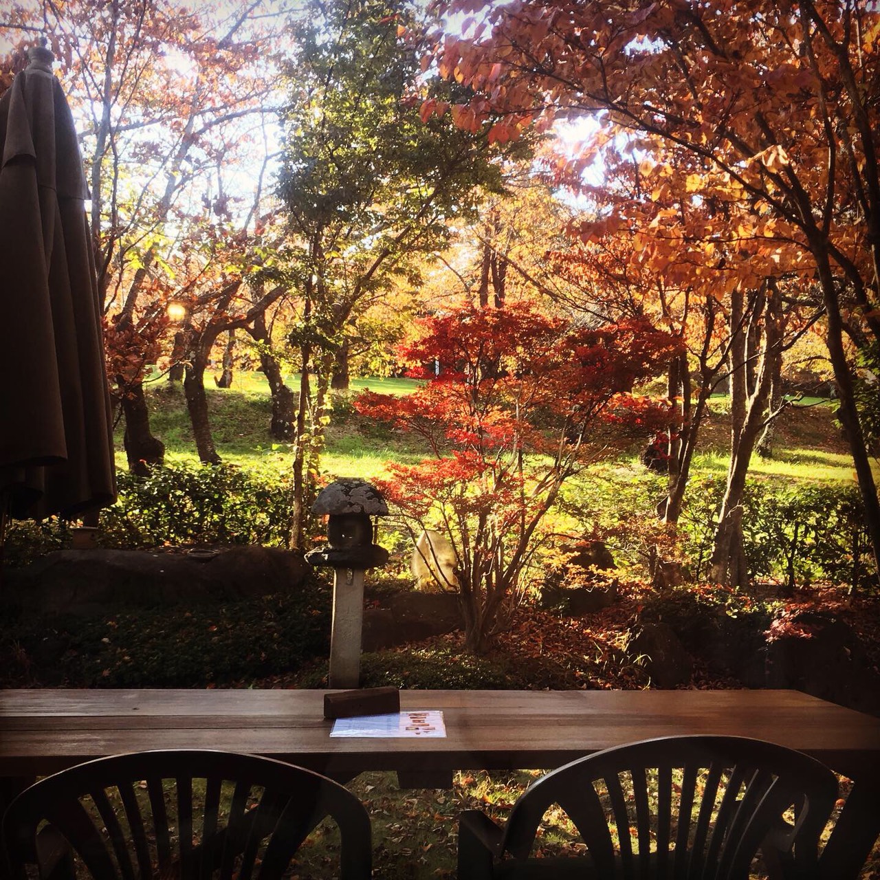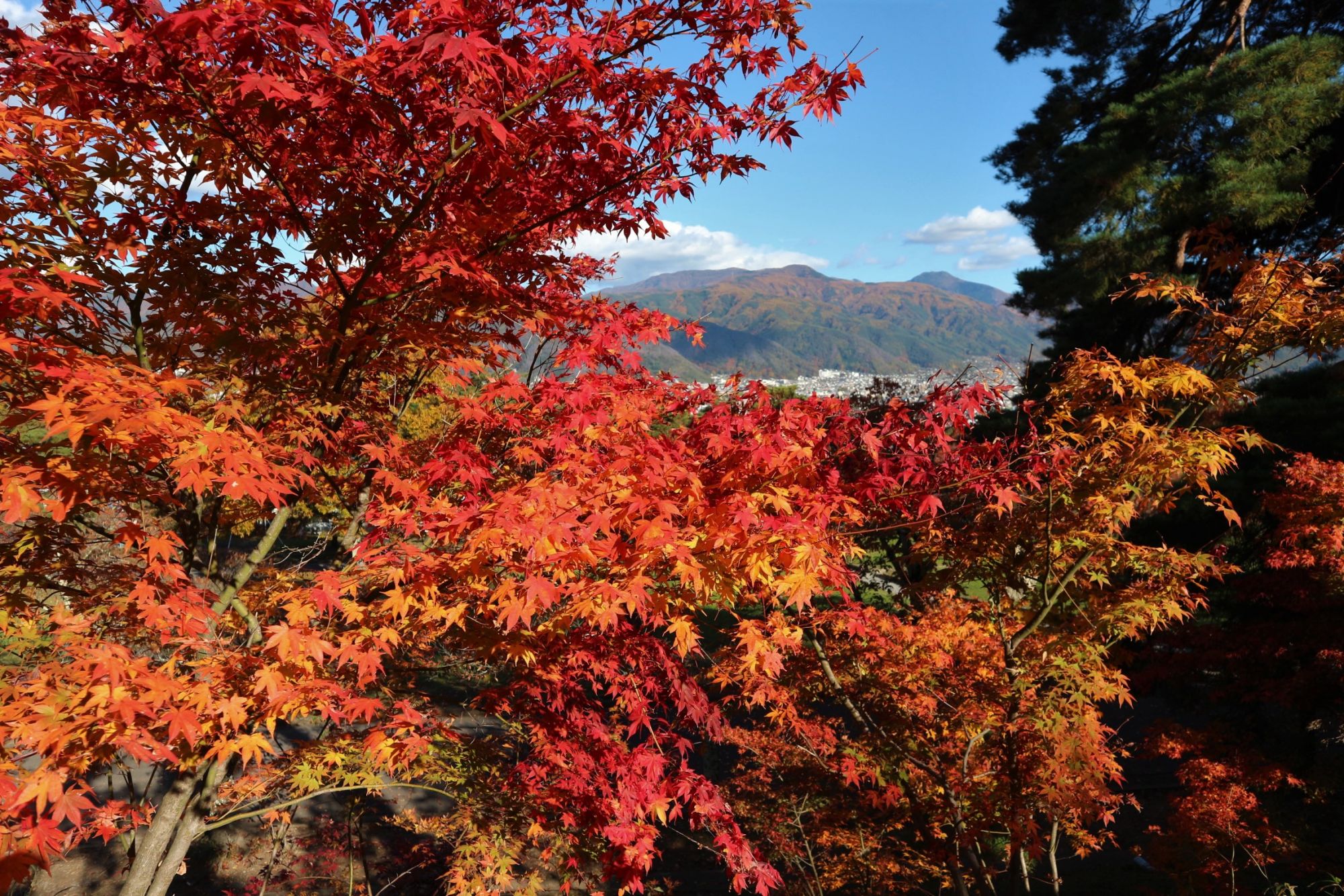 小高い丘に登ると色づいた紅葉の向こうに街が見下ろせます。