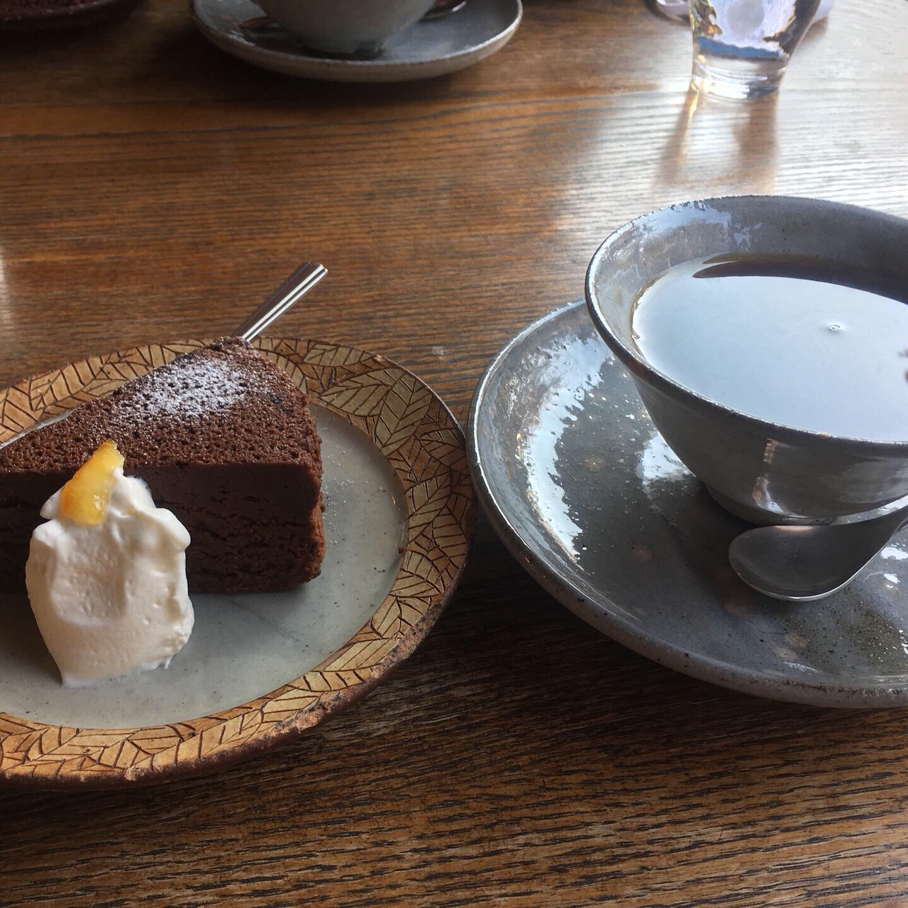 公園の東にある「Gallery&CAFE憩いの森」カフェで珈琲とケーキを頂きました。