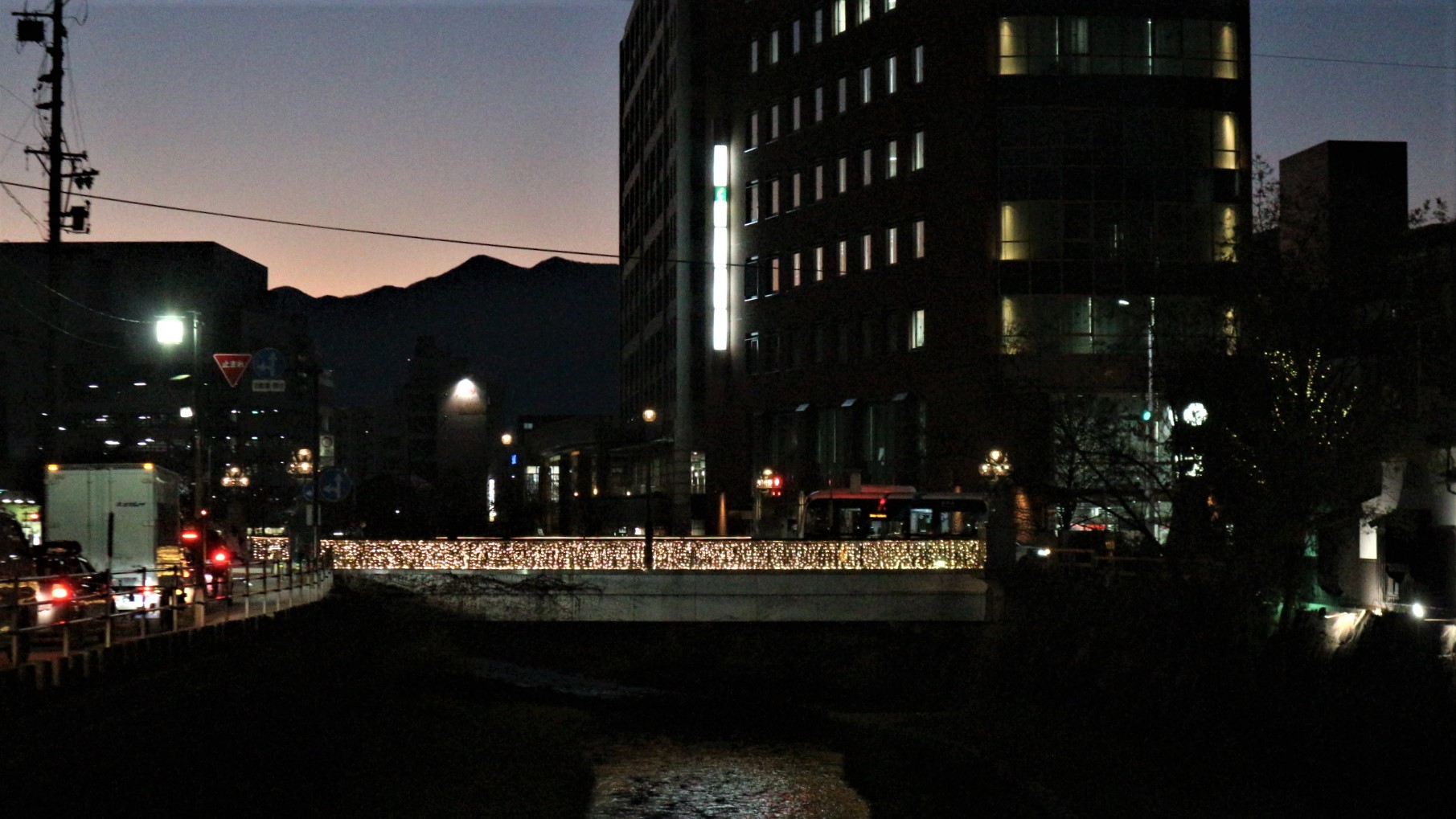イルミネーションが綺麗~ 千歳橋~大名町のイルミネーションは、17時から点灯しています。