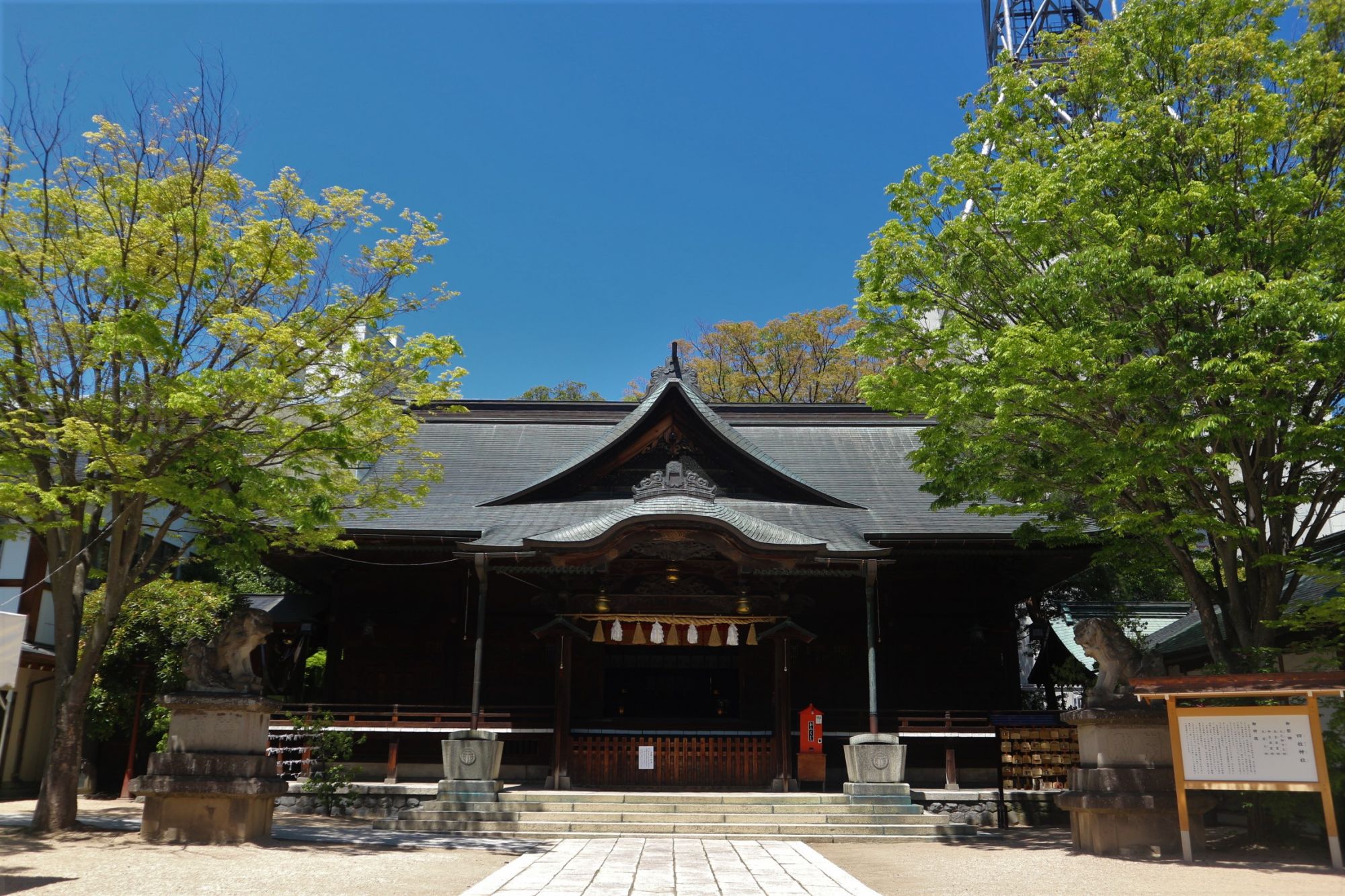 松本の街中に建立する「四柱神社」は、新緑に溢れています。