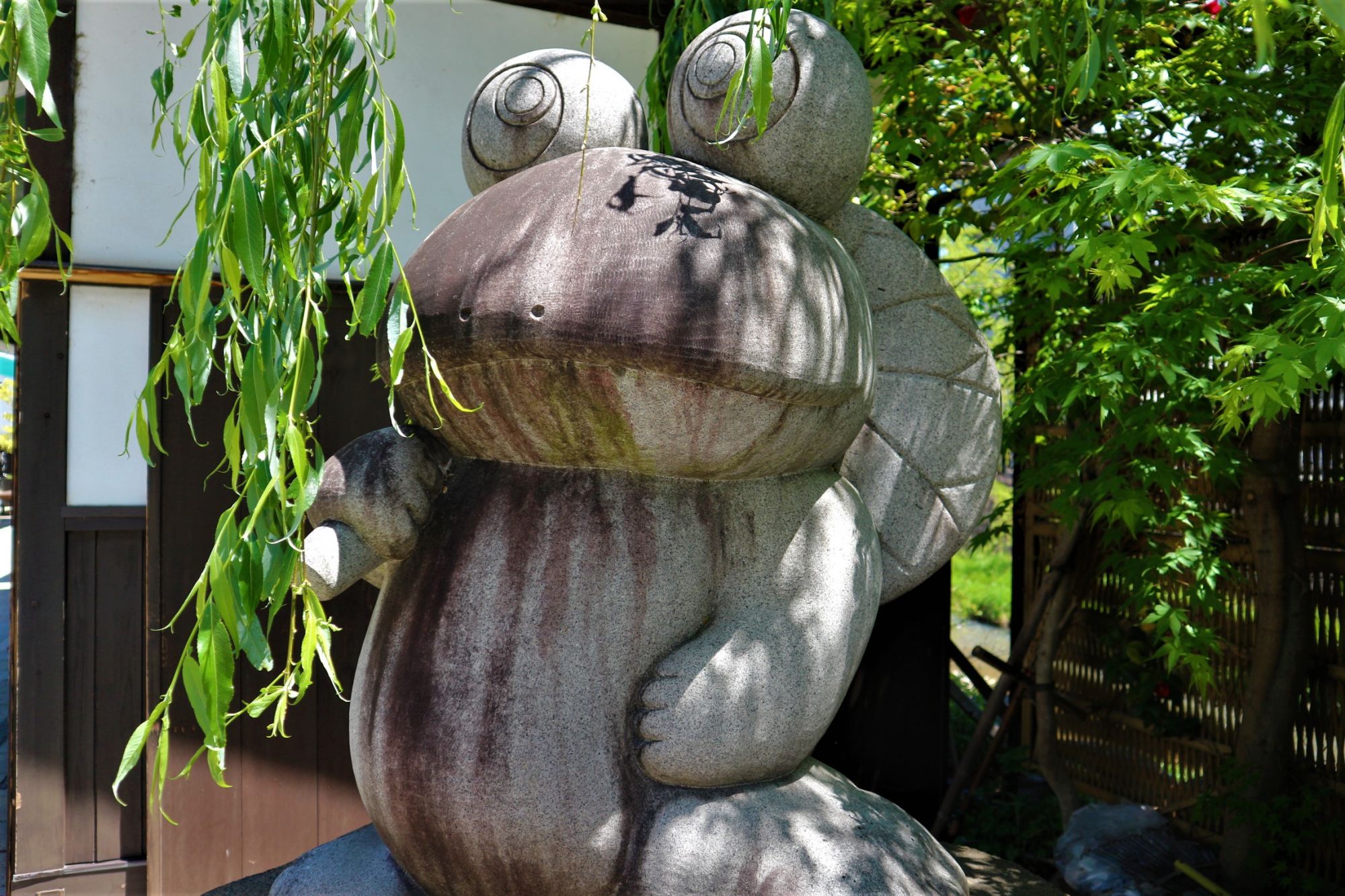 ナワテ通り西の入口に鎮座するカエルのメトバちゃん