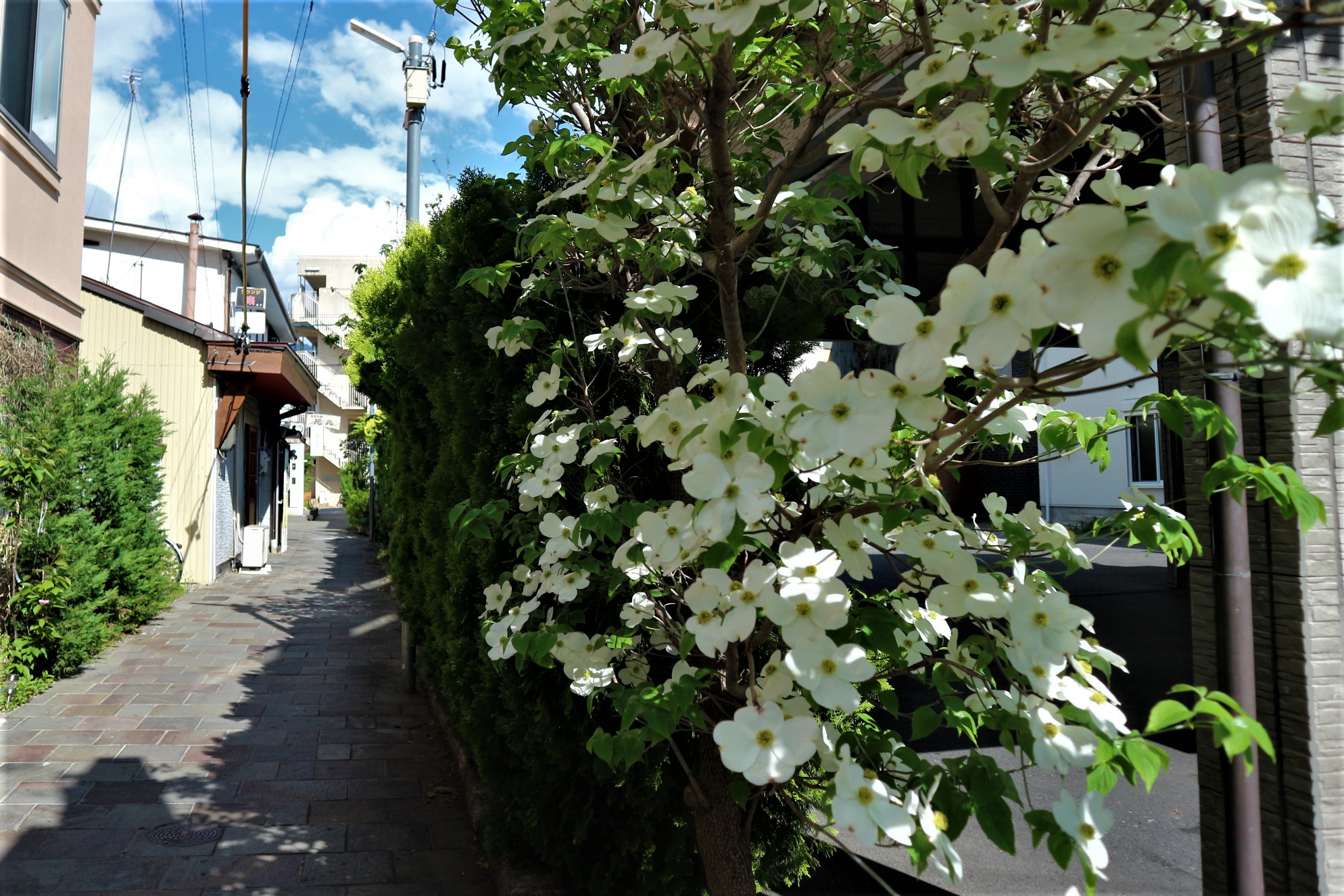 #おうちで松本 街中の花が咲き始めています。 市街地 花情報 2020.5.4 ♥61 5月に入り真夏日にもまるほどぐんぐん気温が上昇した毎日です。 あちらこちらで花が咲き始めました。 妙勝寺の藤棚 妙勝寺藤棚2年5月4日 妙勝寺藤棚白 中町 歩道の藤棚 南側の藤棚は、先週から咲いていましたが、西側も咲き始めました。 中町藤棚 中町藤棚 女鳥羽川沿い遅咲きの桜 女鳥羽川沿いの遅咲きの桜も満開になりましたが、あまりの暑さのでいでしょうか枯れ始めていました。 遅咲きの桜 上土町 東門の井戸前のハナミズキ 市内のあちらこちらで街路樹として植えられているハナミズキが咲き始めています。 上土町ハナミズキ 路地に咲くヤマボウシ 上土町路地ヤマボウシ 本日もとても暑い1日でした。 Tweet