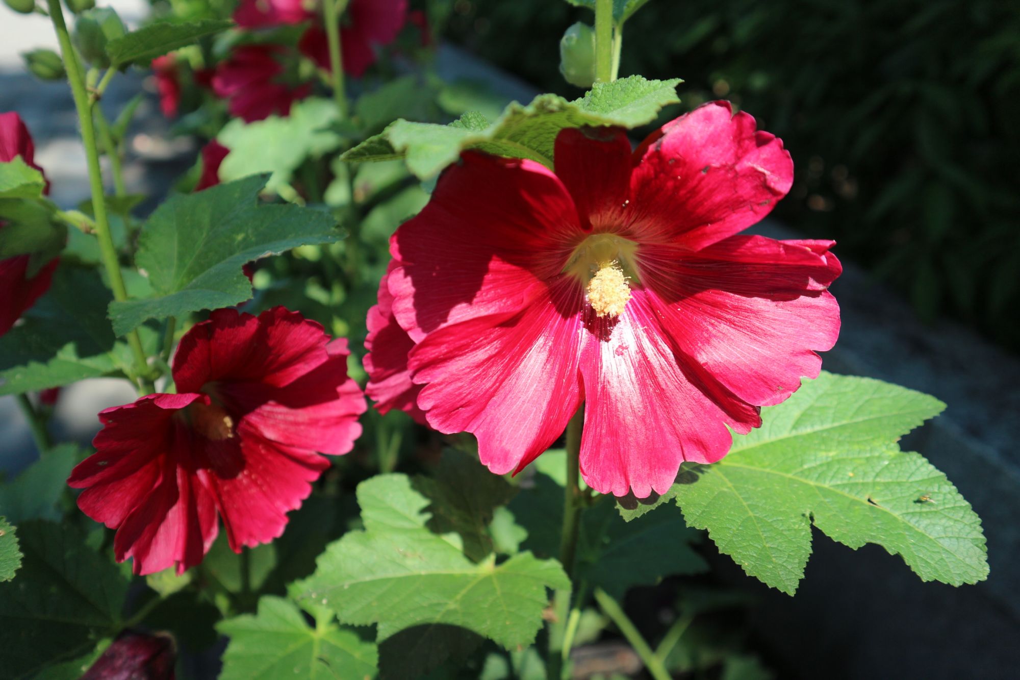 松本神社境内赤い立葵